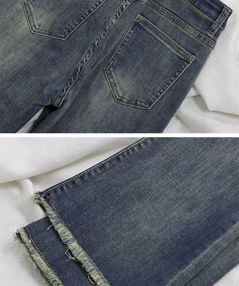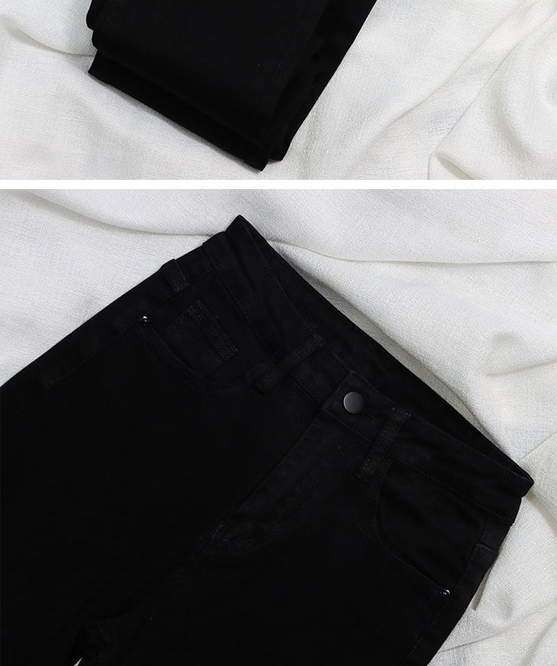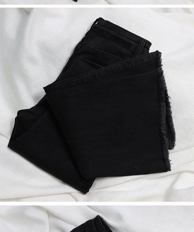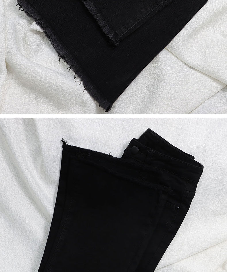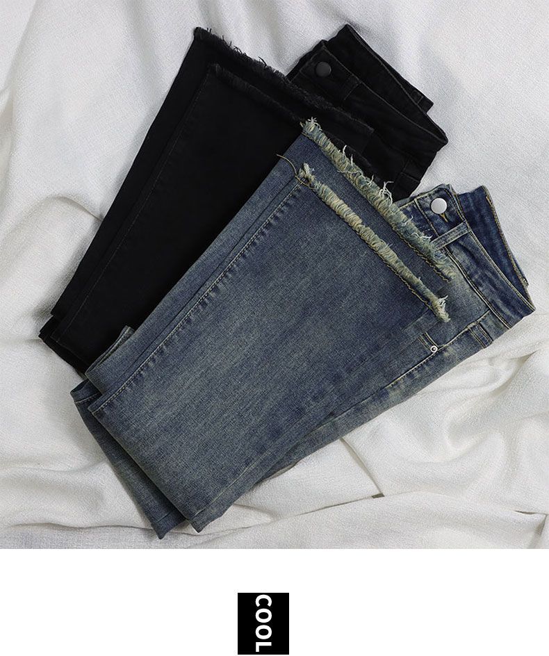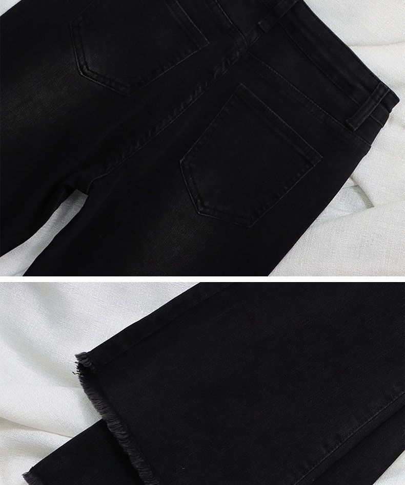 2024 봄과 가을 새로운 마이크로 라 청바지 여성의 높은 허리 슬림 9 포인트 작은 배 모양의 피겨 혼 바지스토어 가기