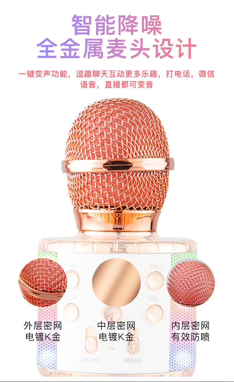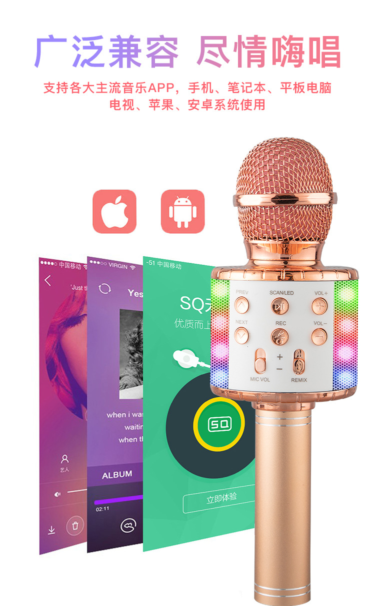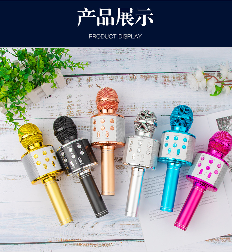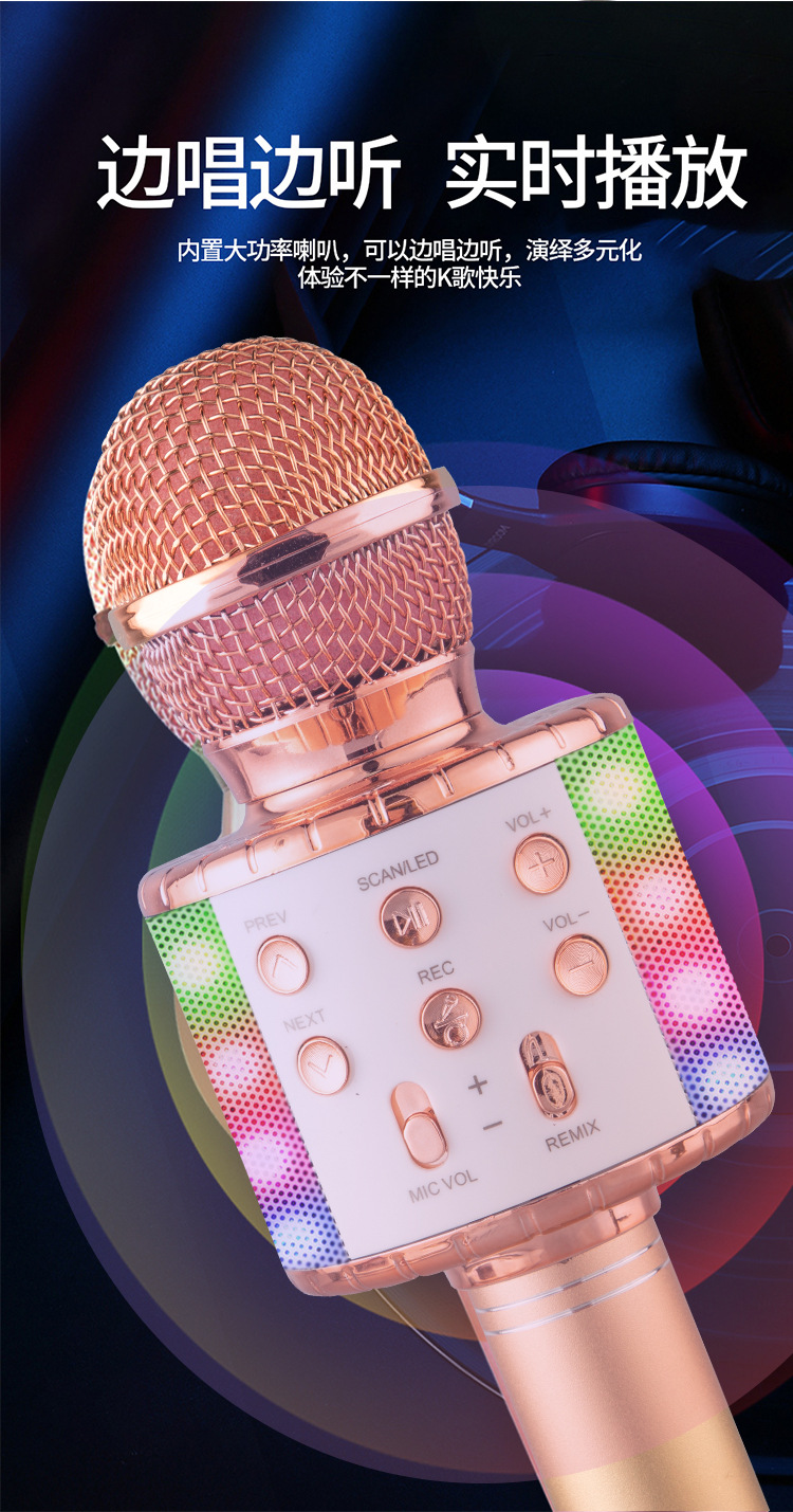 WS858L 조명 내장 마이크 오디오 일체형 콘덴서 마이크 휴대폰 어린이 노래방 무선 블루투스 해외배송