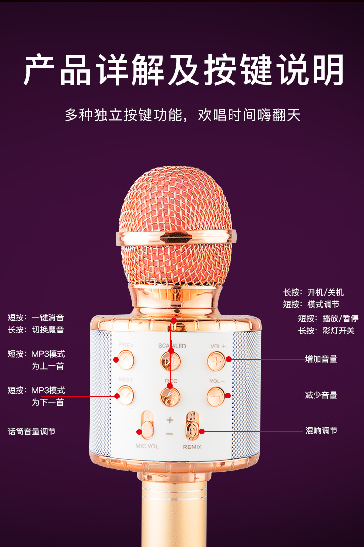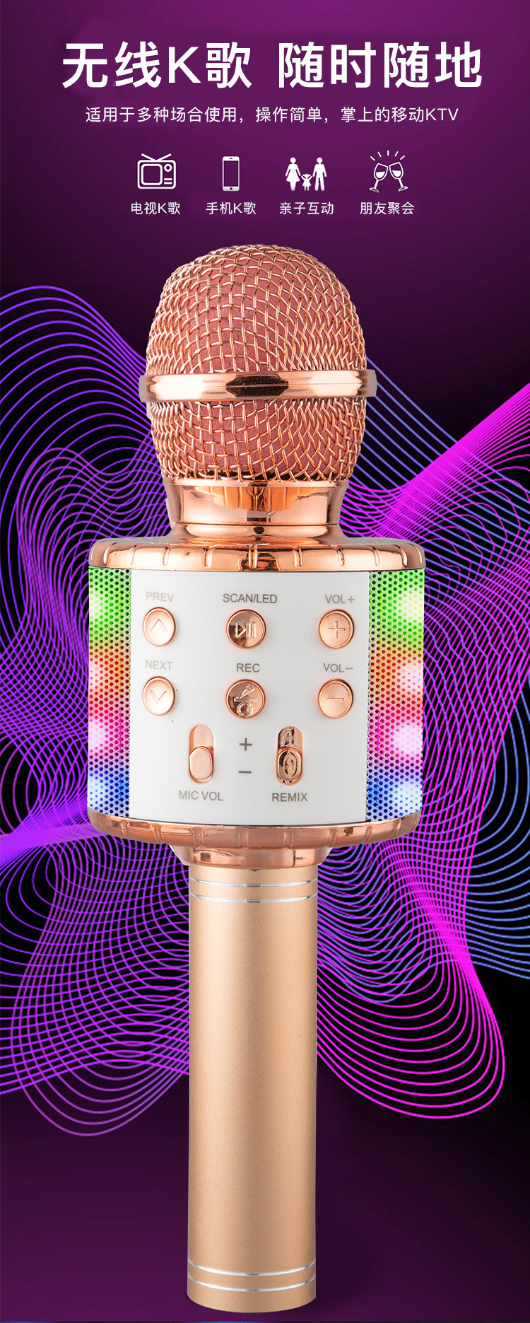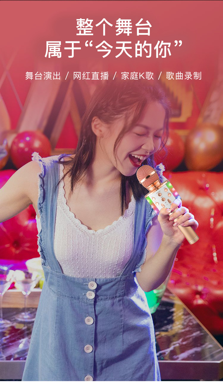 WS858L 조명 내장 마이크 오디오 일체형 콘덴서 마이크 휴대폰 어린이 노래방 무선 블루투스 해외배송