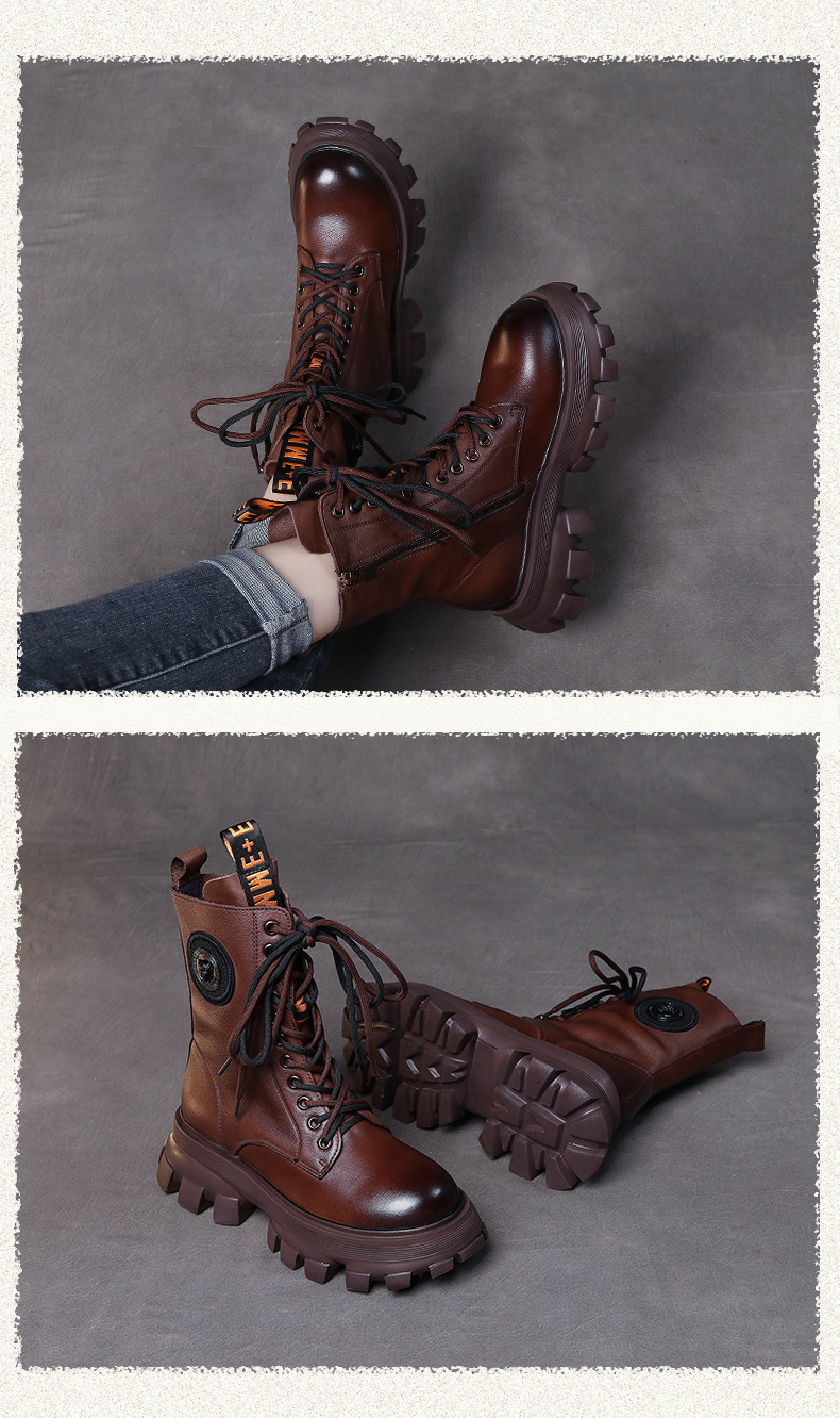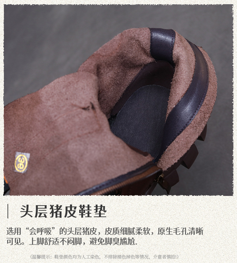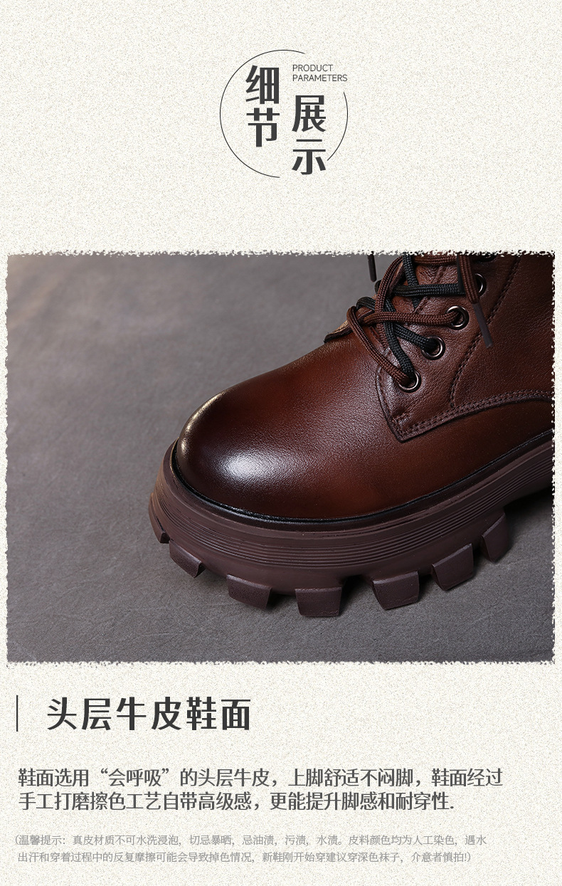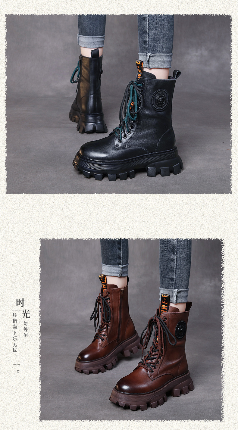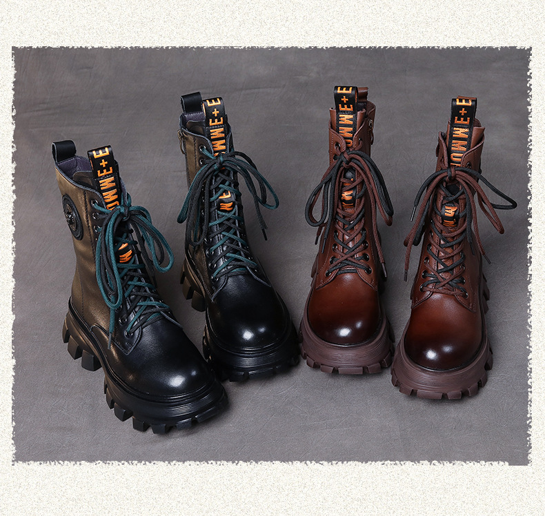 탑 레이어 Cowhide 가을과 겨울 기모 따뜻한 새로운 올 매치 플랫폼 하단 미들 실린더 지퍼 부츠 여성을위한 마틴 부츠스토어 가기