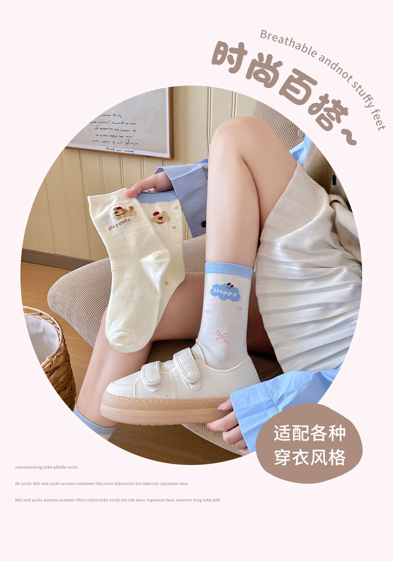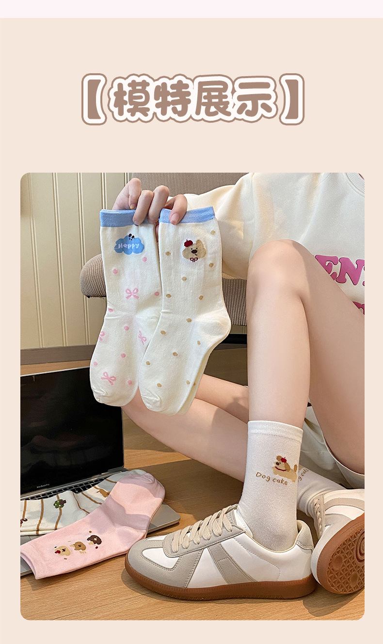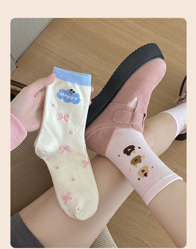 만화 양말 어린이 가을과 겨울 새로운 귀여운 튜브 양말 면화 땀 흡수성 일본 강아지 줄무늬 양말 Zhuji 도매
