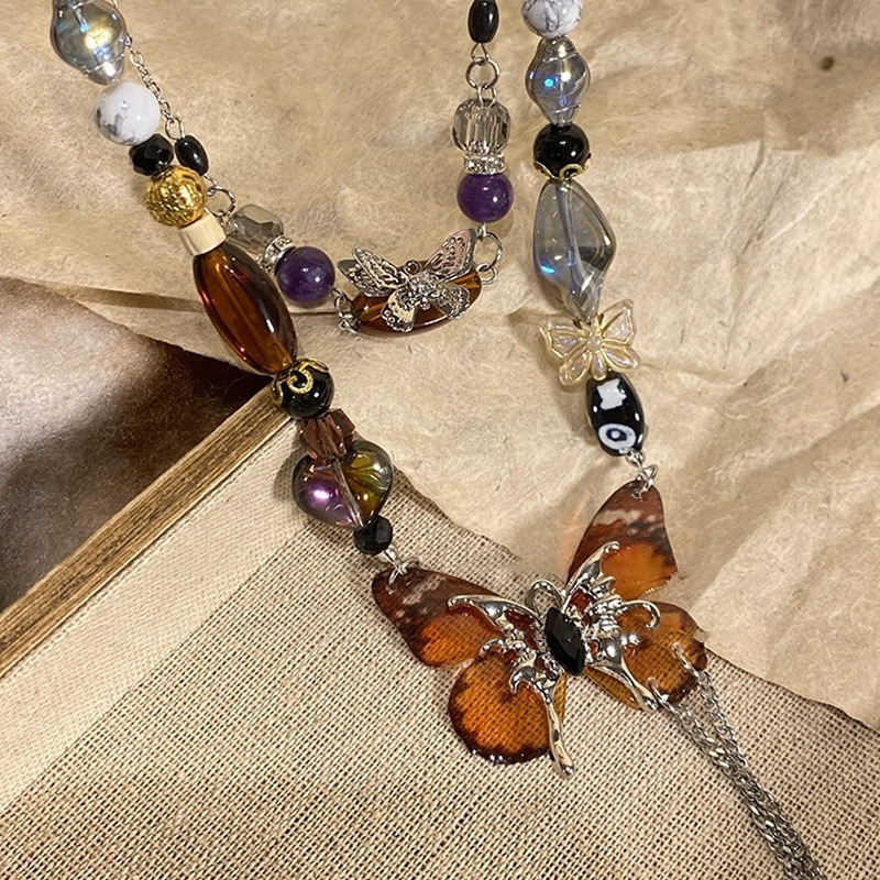 Maillard 더블 레이어 나비 목걸이 여성 중공업 크리스탈 유약 쇄골 체인 고급 초커 넥 체인 액세서리스토어 가기