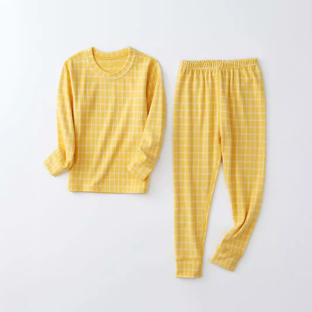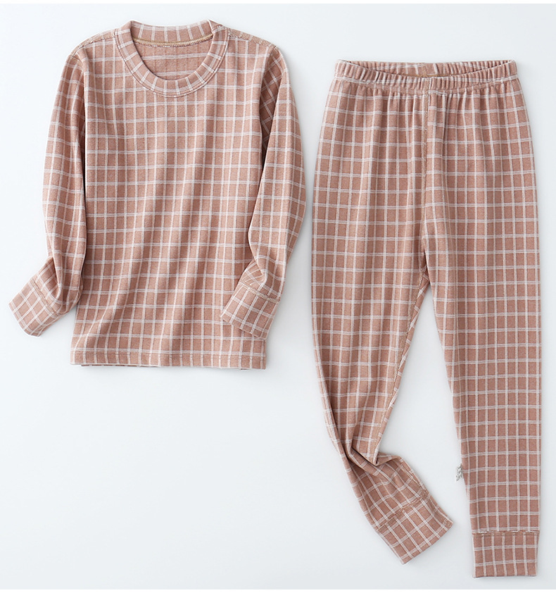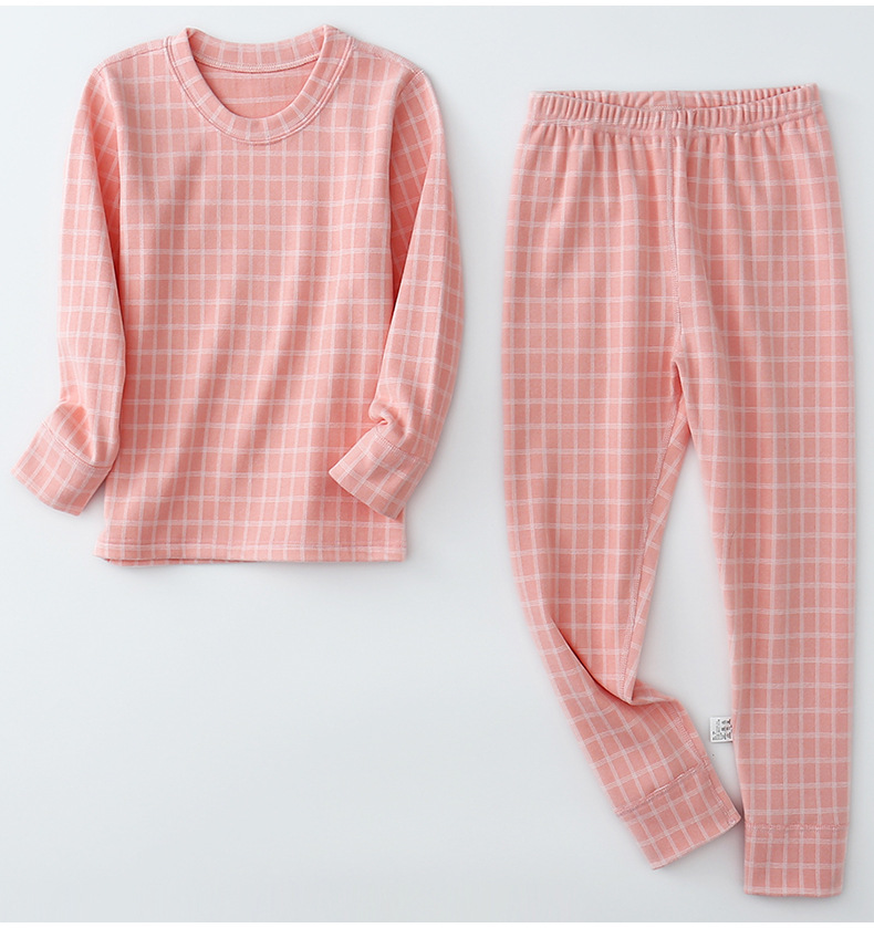 새로운 어린이 격자 무늬 벨벳 가을 옷 가을 바지 소년 소녀 가을과 겨울 열 속옷베이스 세트