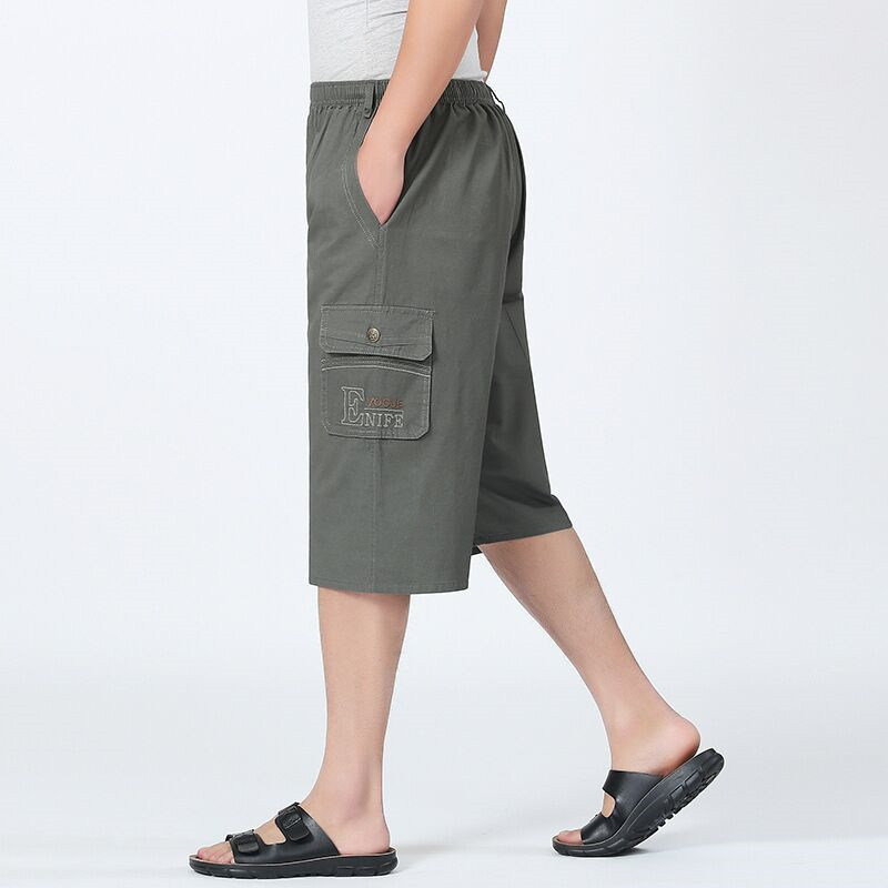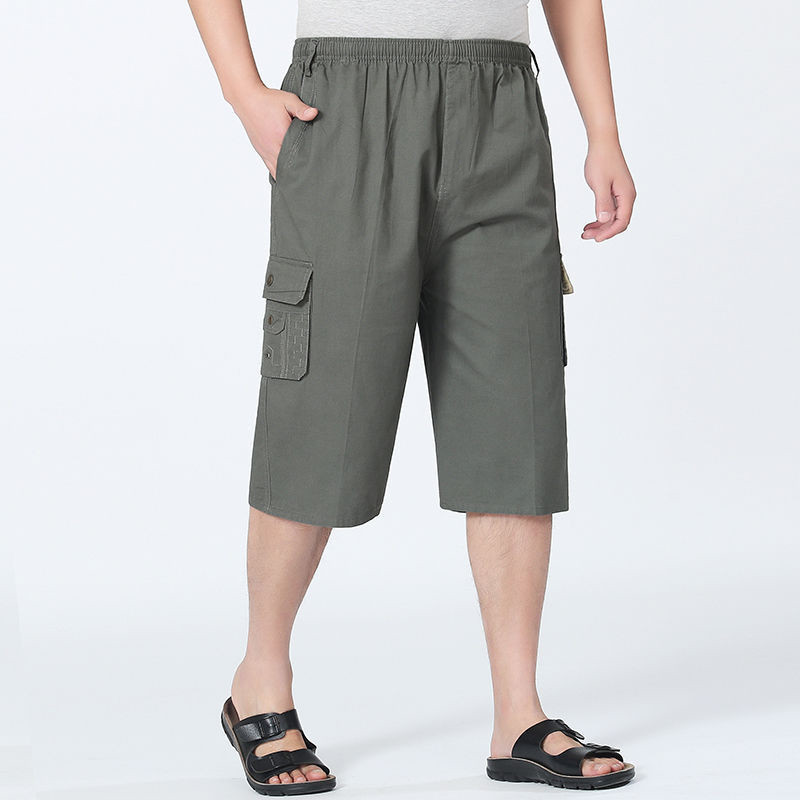 여름 아빠 반바지 남자 중년 캐주얼 카프리 바지 남자 바지 반바지 남자 느슨한 스트레이트 바지스토어 가기