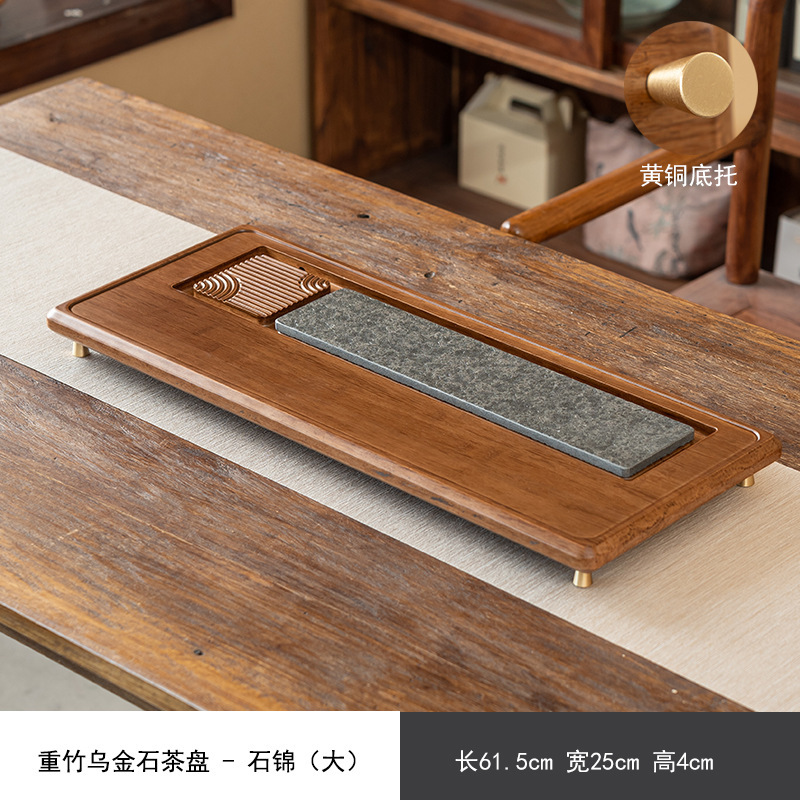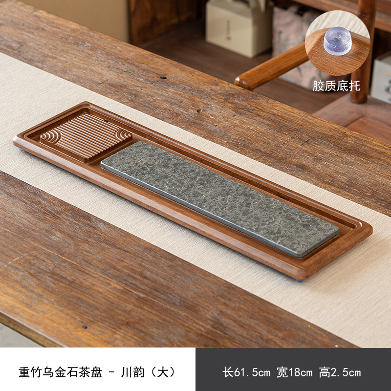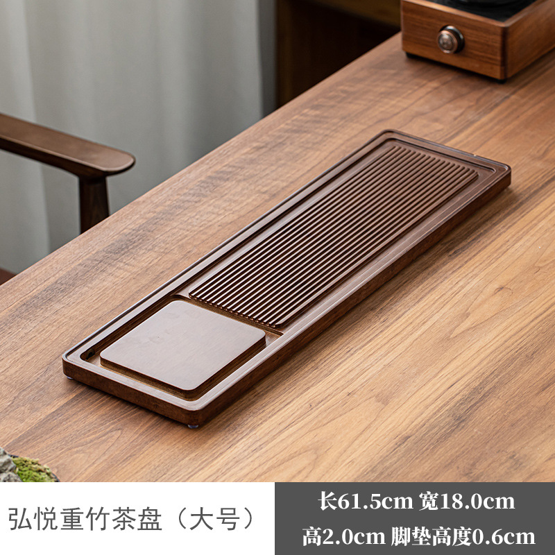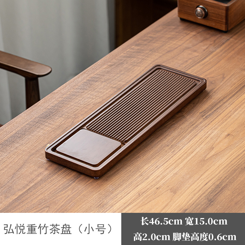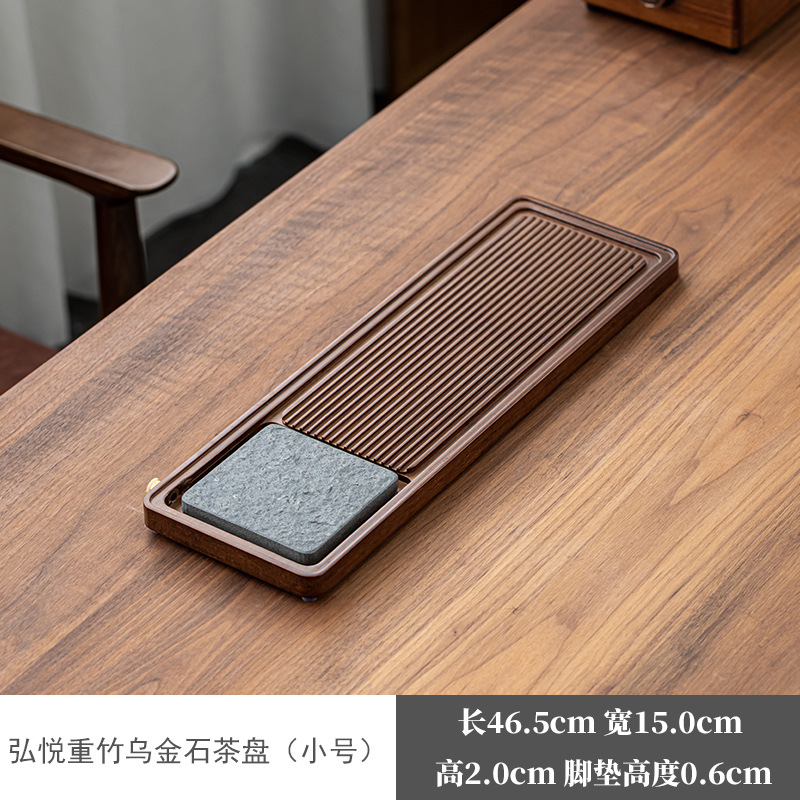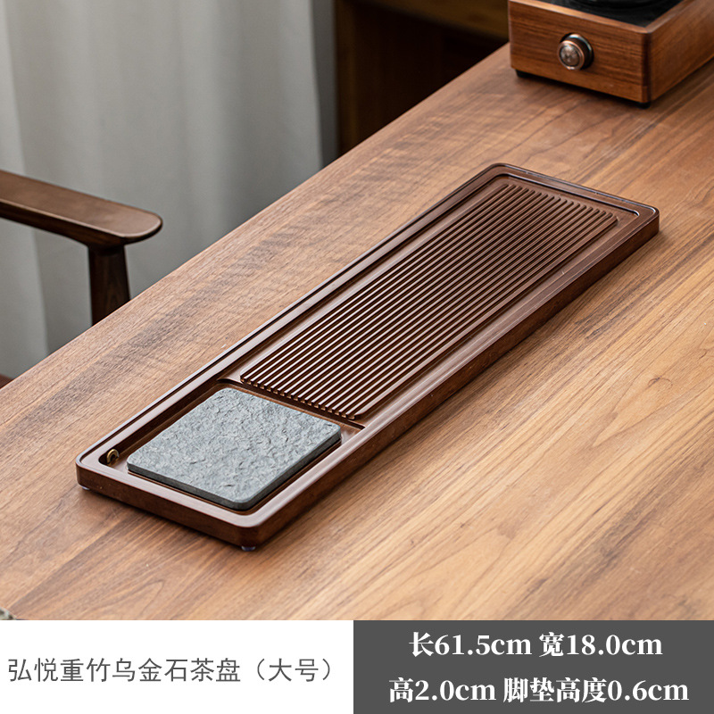 Wujinshi 단단한 나무 차 트레이 가정용 쿵푸 차 세트 차 바다 무거운 대나무 긴 광장 건조한 양조 테이블 배수 차 세트 작은 트레이