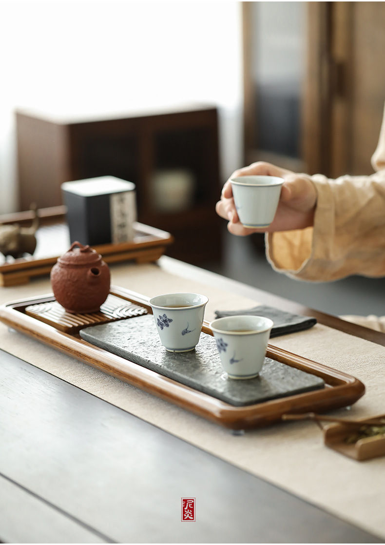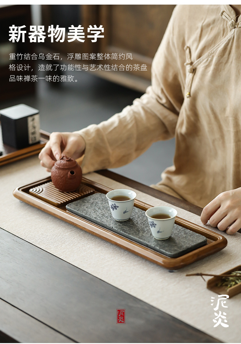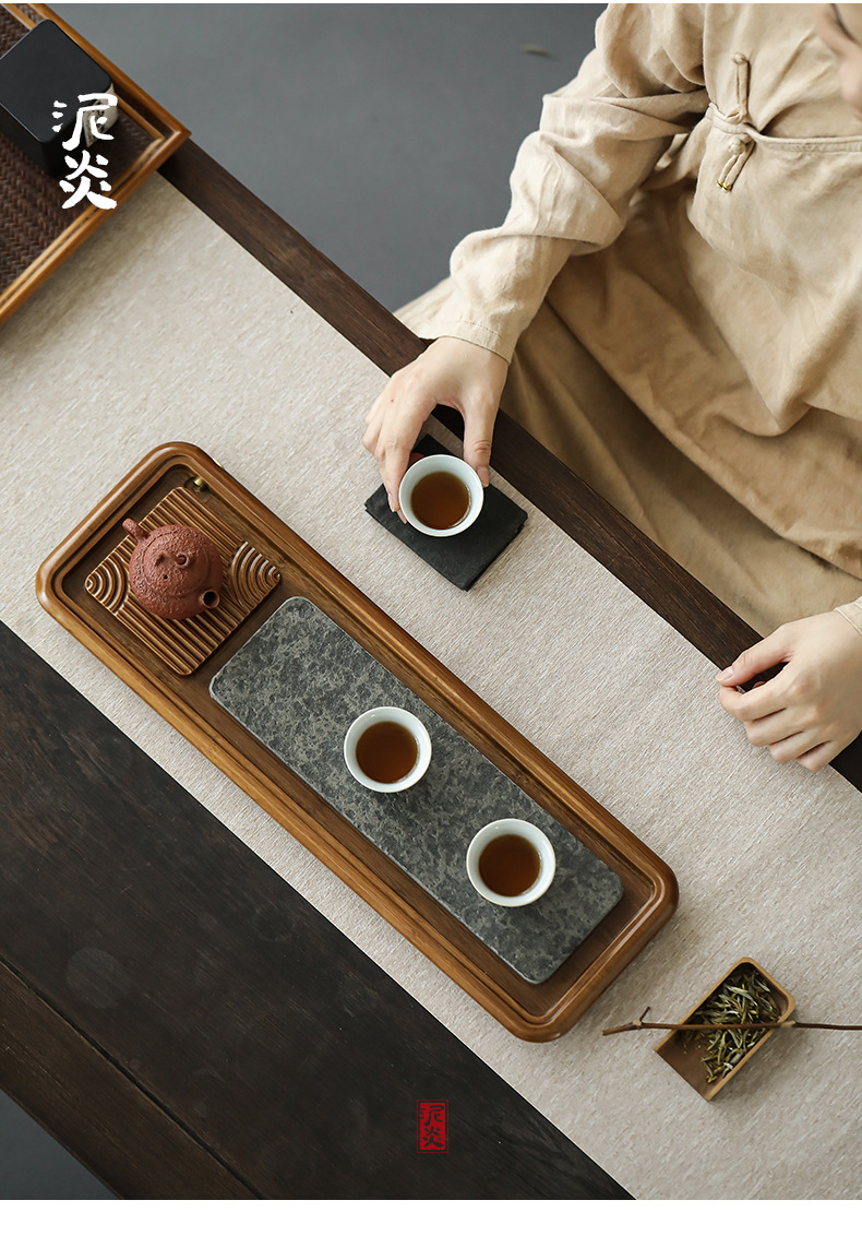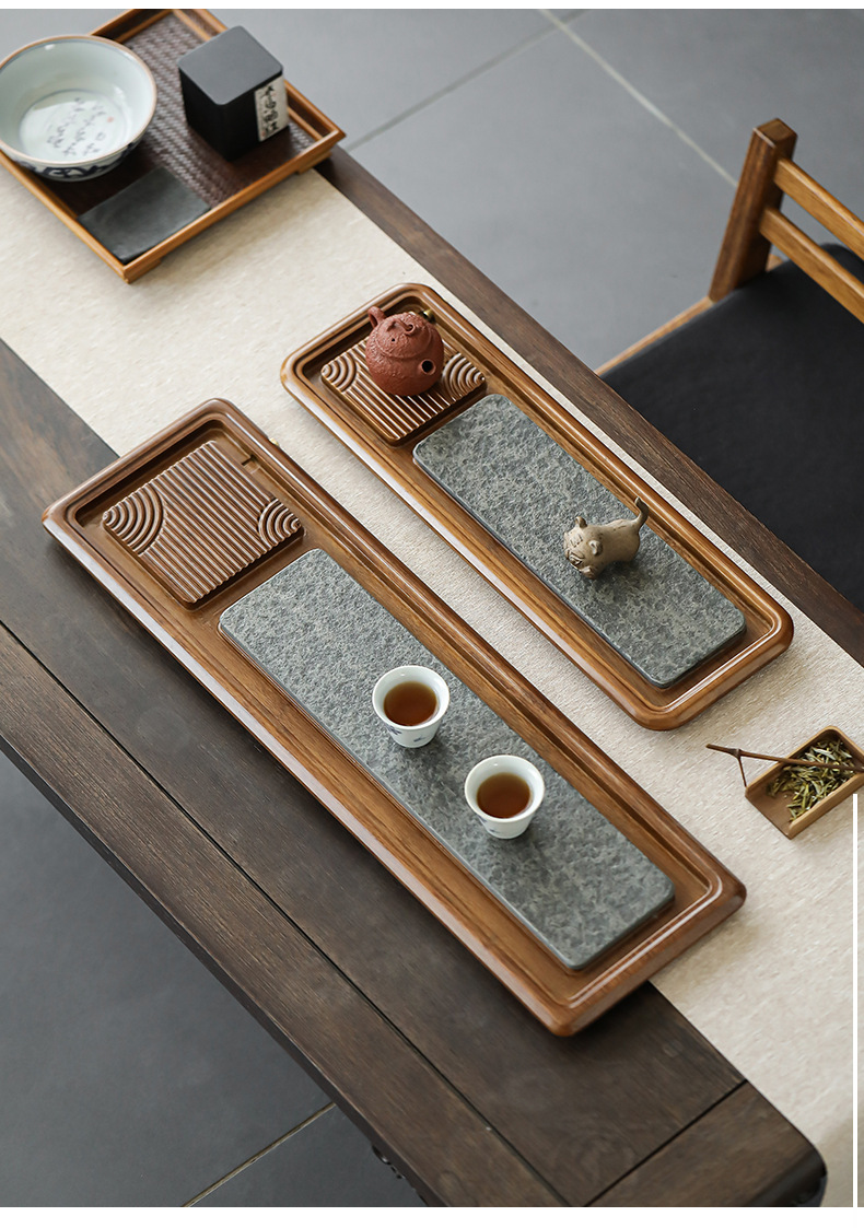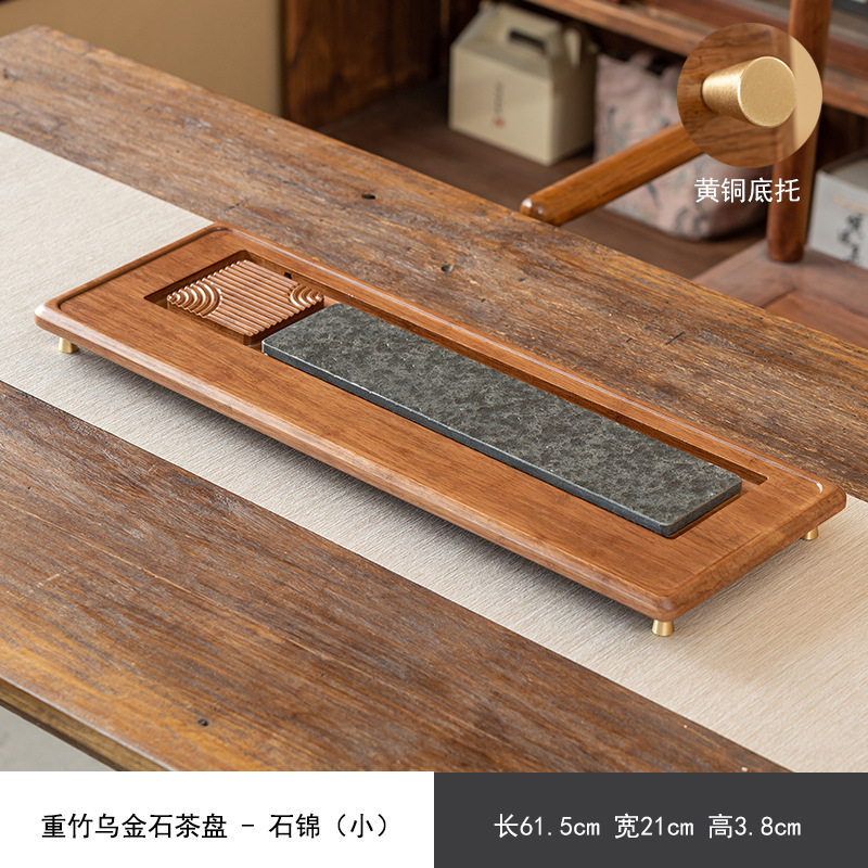 Wujinshi 단단한 나무 차 트레이 가정용 쿵푸 차 세트 차 바다 무거운 대나무 긴 광장 건조한 양조 테이블 배수 차 세트 작은 트레이
