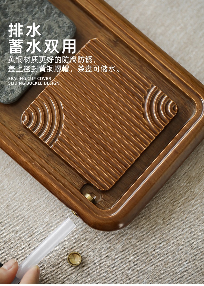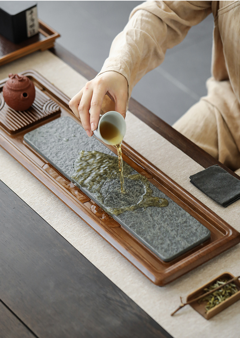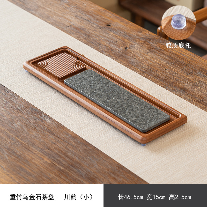 • Lanxi 대나무 블랙 골드 스톤 티 트레이-대형