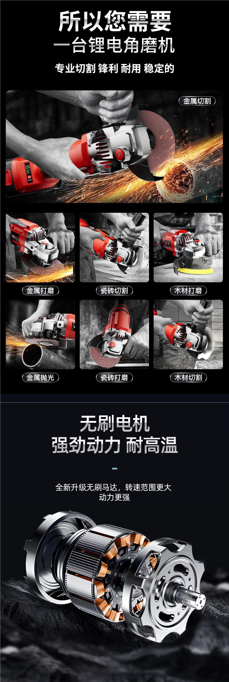 퓨지 브러시리스 충전식 앵글 그라인더 리튬 배터리 고출력 전기 그라인더 절단 기계 손 연삭 휠 연삭 기계