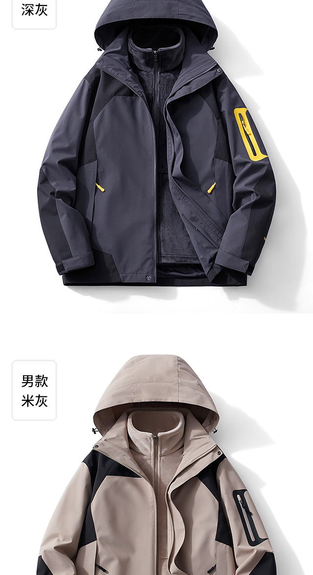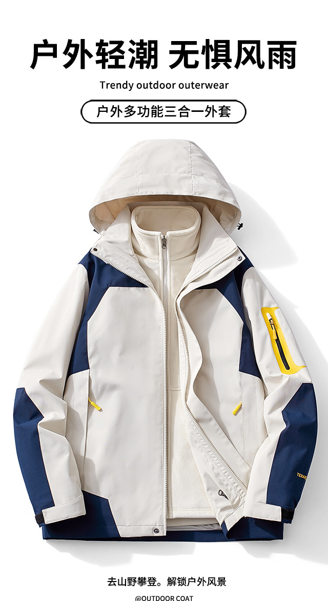 남성과 여성의 새로운 봄, 가을 야외 방풍 재킷 작업복 등산 재킷 라이너 3-in-1 방수 재킷스토어 가기