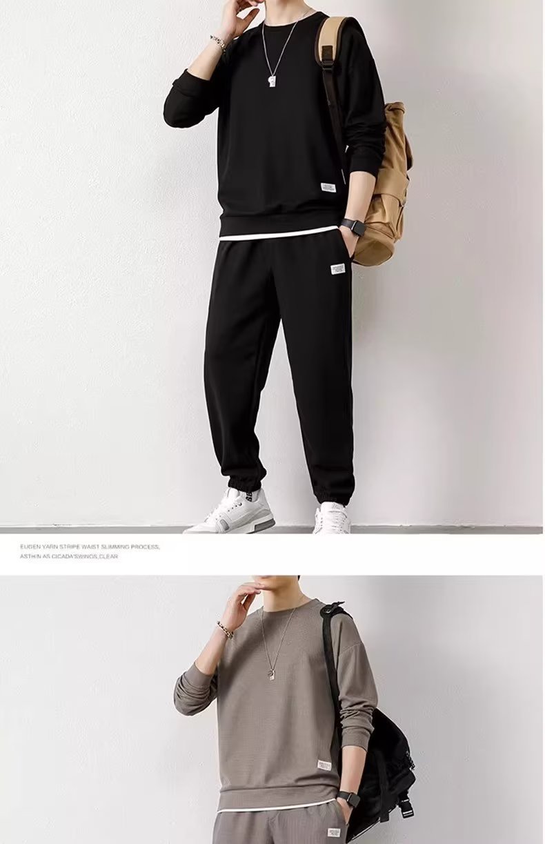 스포츠 레저 땀 세트 남자의 느슨한 봄과 가을 새로운 유행 옷 잘 생긴 간단한 세트