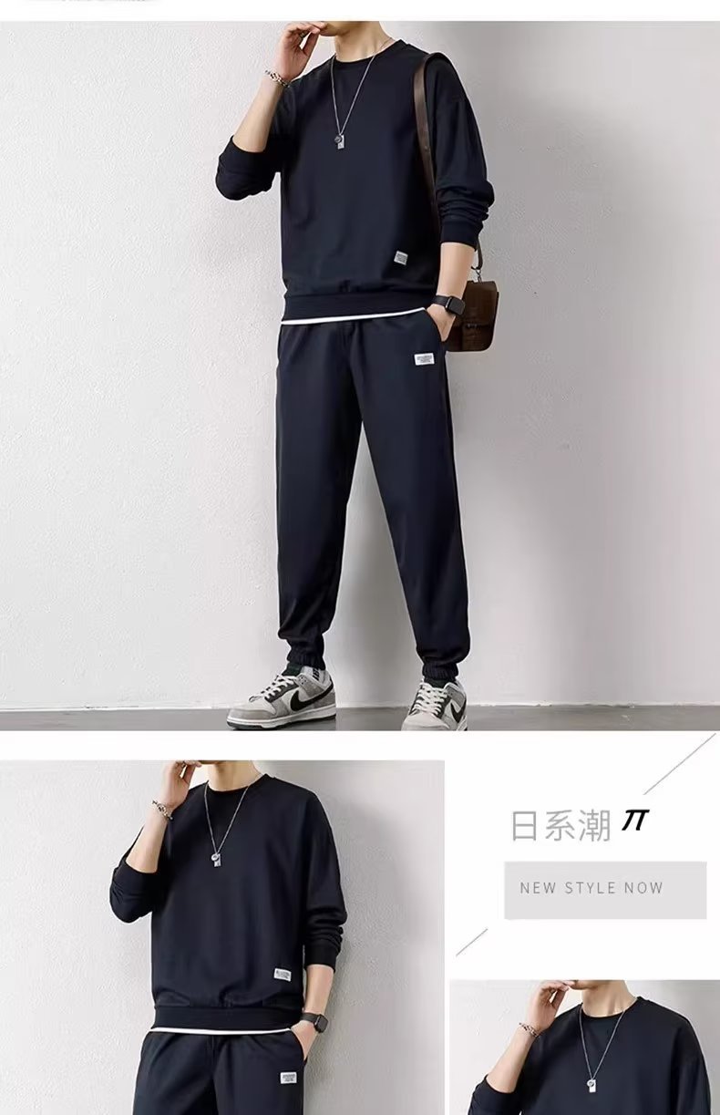 스포츠 레저 땀 세트 남자의 느슨한 봄과 가을 새로운 유행 옷 잘 생긴 간단한 세트스토어 가기