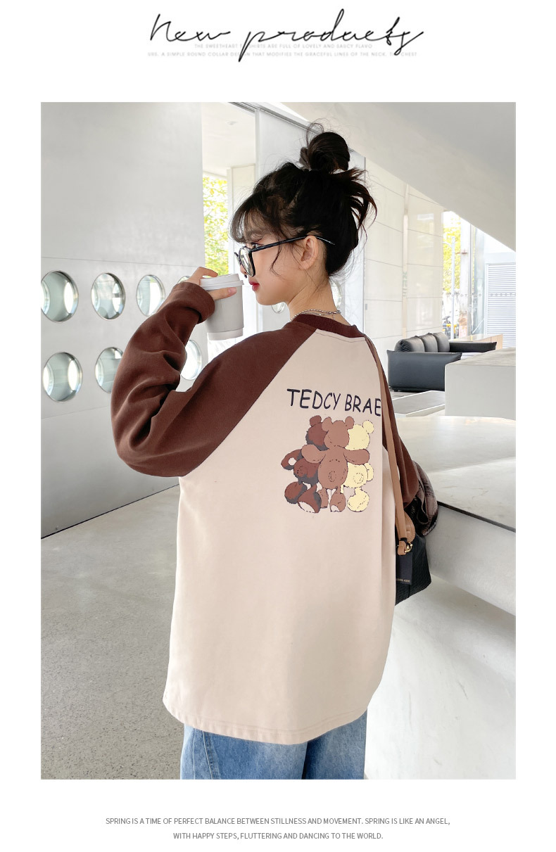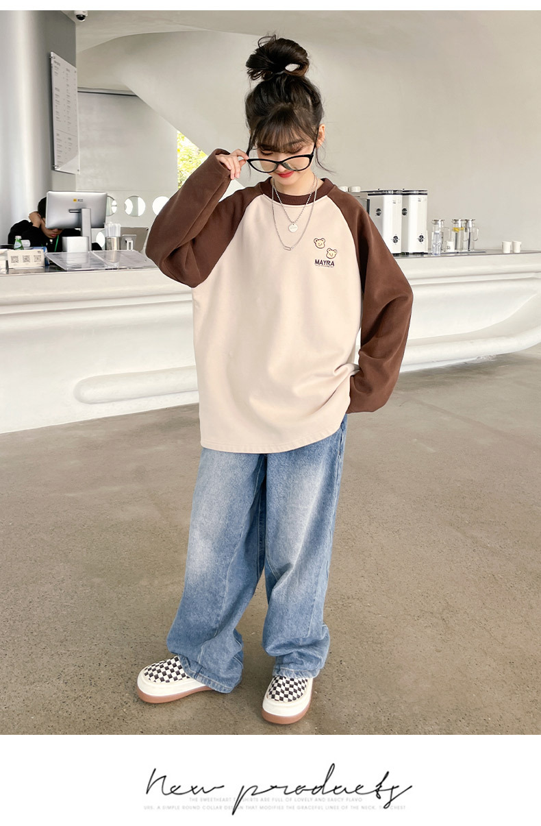 소녀베이스 셔츠 2024 가을 새로운 스타일 웨스턴 스타일 소녀 긴 소매 티셔츠 라운드 넥 내부 상단 스티칭 트렌디 T스토어 가기