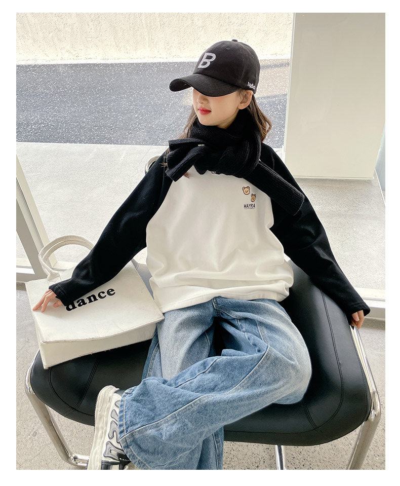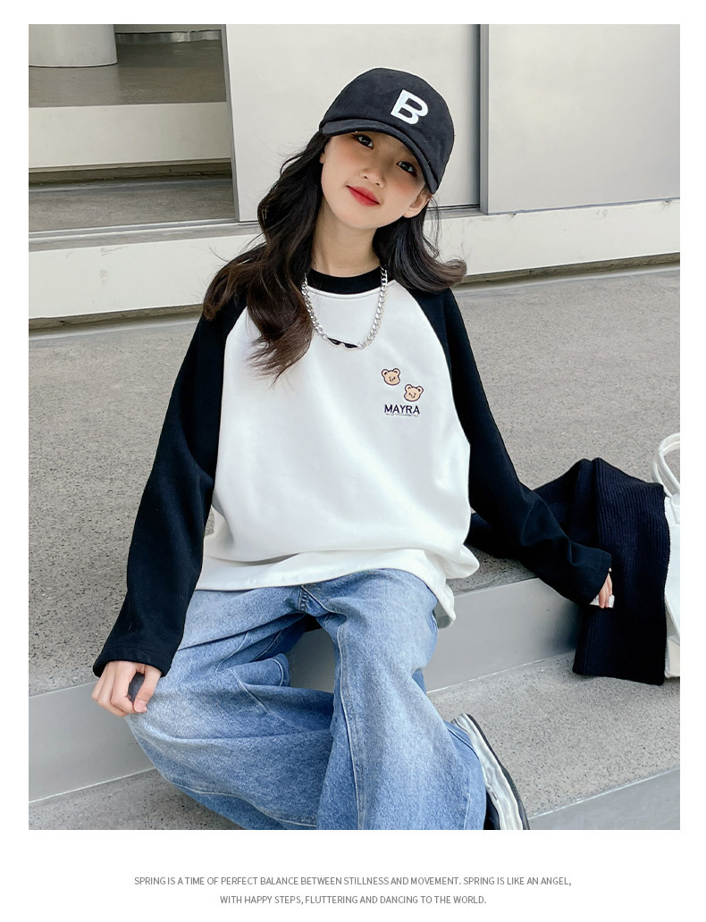 소녀베이스 셔츠 2024 가을 새로운 스타일 웨스턴 스타일 소녀 긴 소매 티셔츠 라운드 넥 내부 상단 스티칭 트렌디 T
