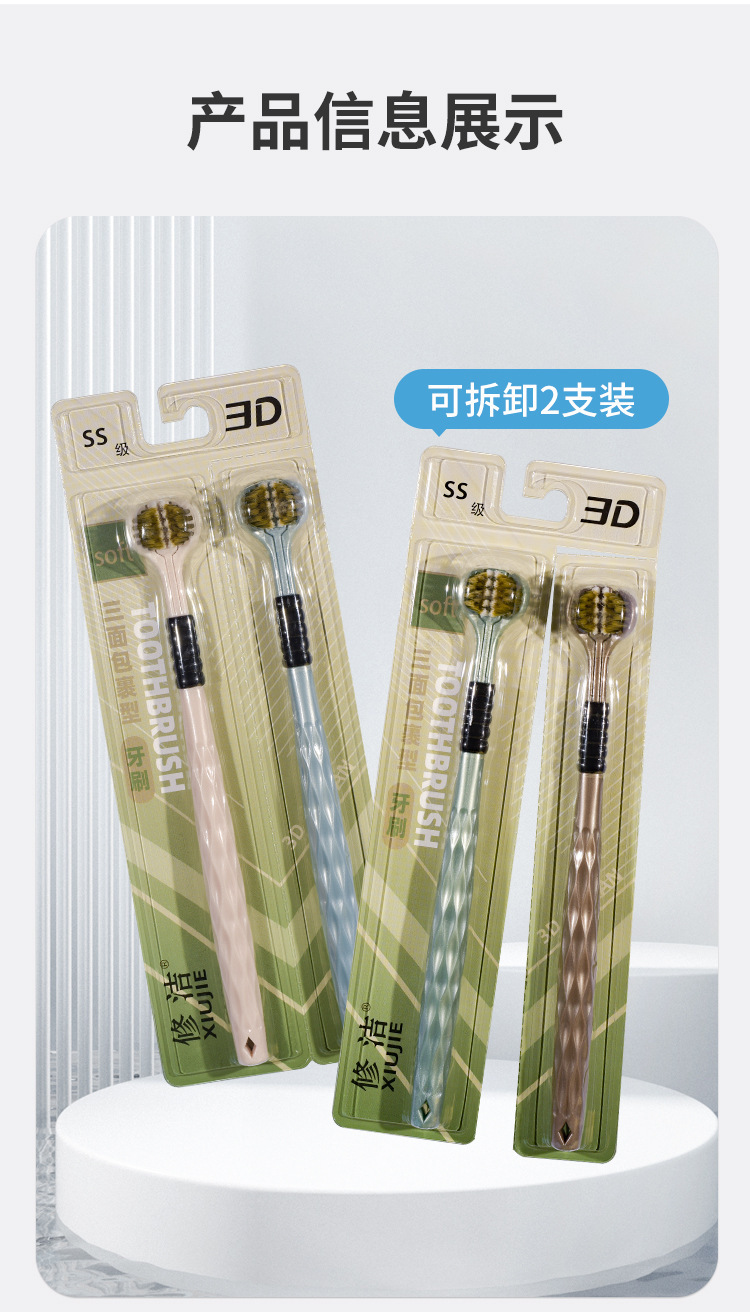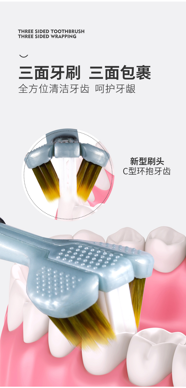 3 면 칫솔 성인 부드러운 머리 남자와 여자의 특별한 단단한 머리 감싸는 3 차원 죽은 각도 면도 청소 가구스토어 가기