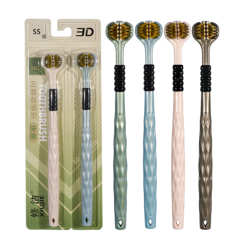 3 면 칫솔 성인 부드러운 머리 남자와 여자의 특별한 단단한 머리 감싸는 3 차원 죽은 각도 면도 청소 가구