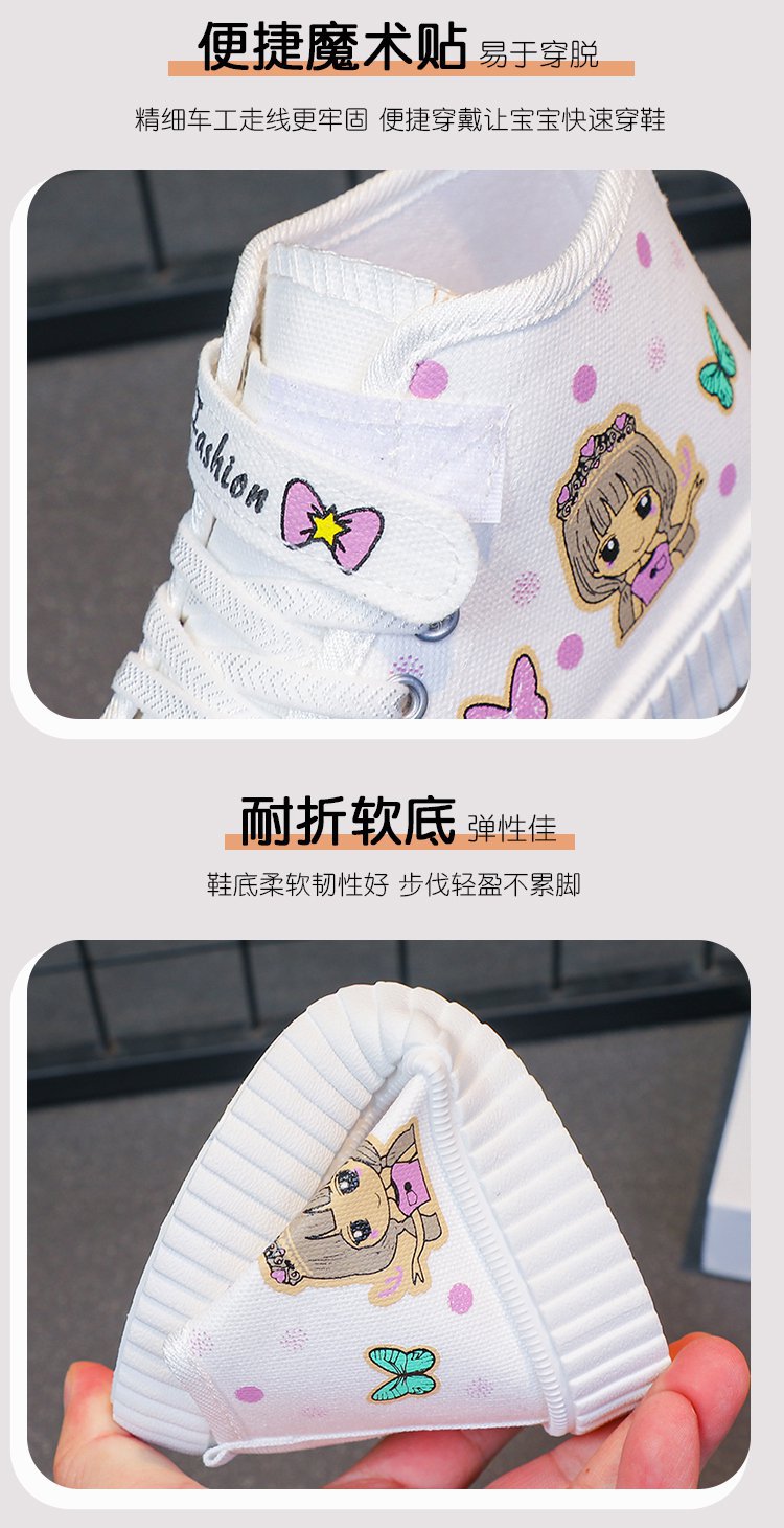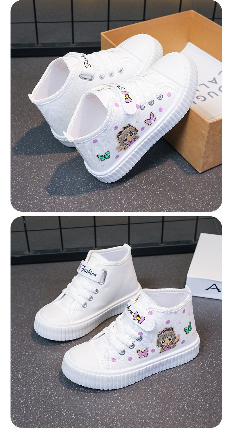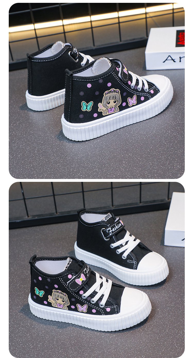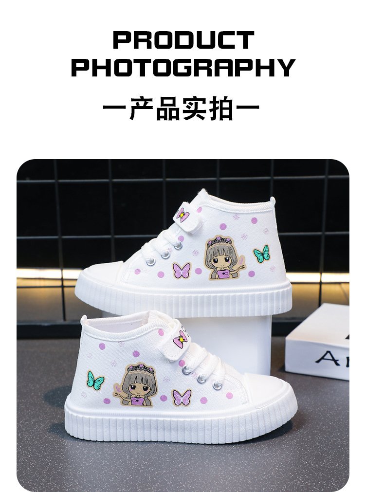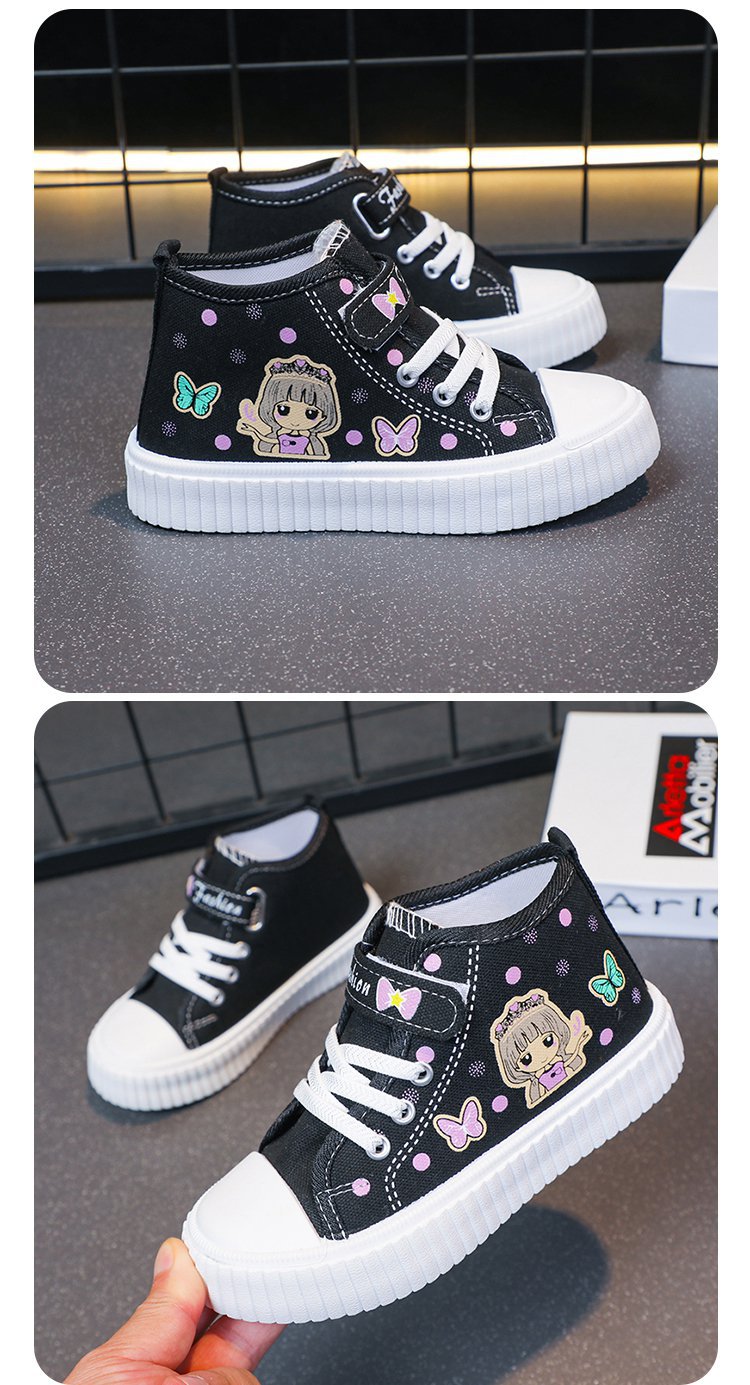 대외 무역 어린이 하이 탑 캔버스 신발 2024 봄과 가을 새로운 통기성 소녀 캐주얼 신발 어린 소녀 만화 보드 신발스토어 가기