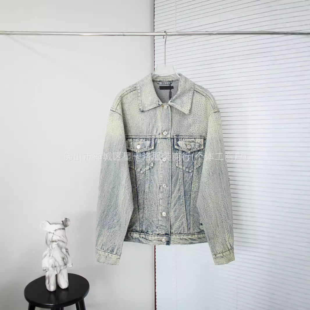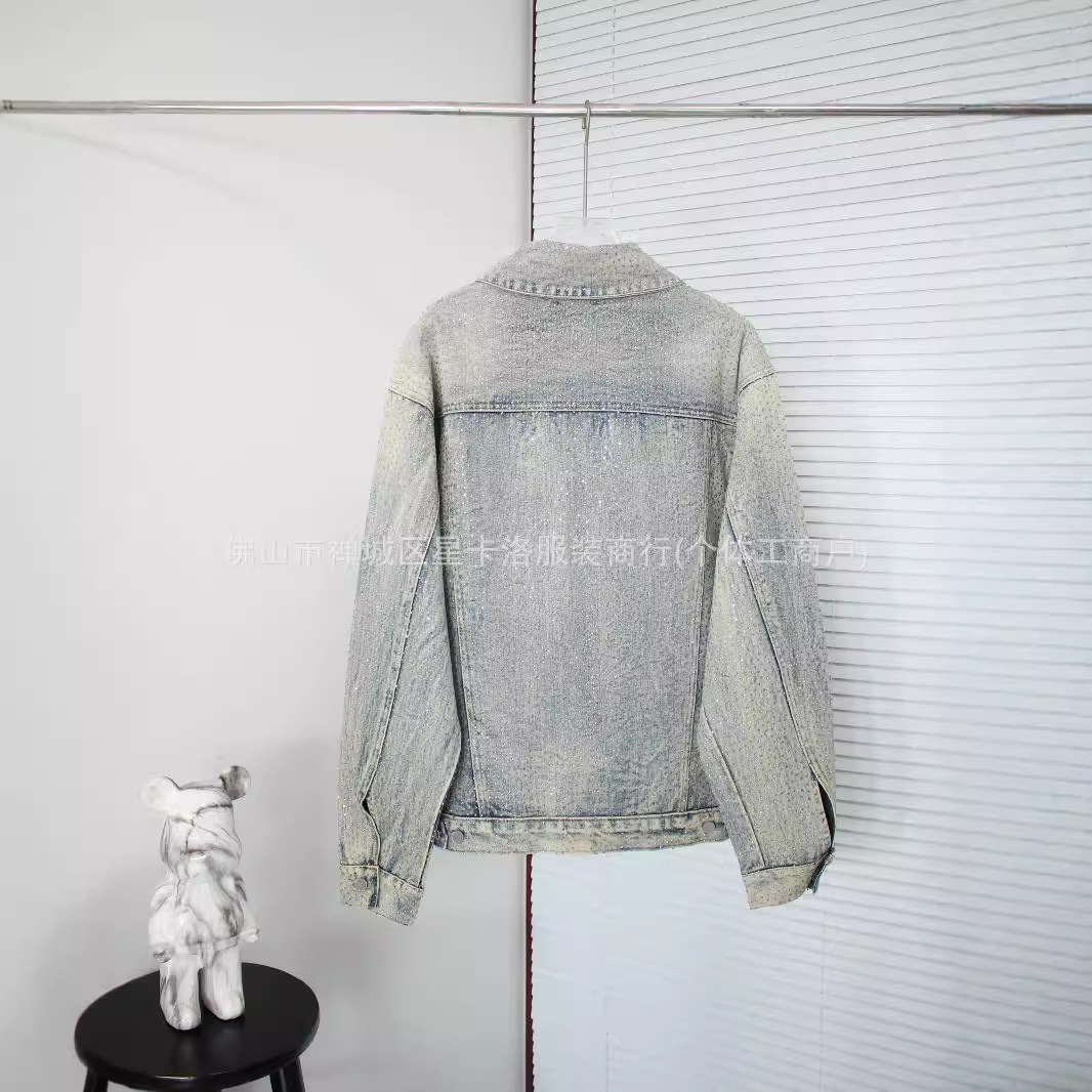 24ss High Version B Home 이른 가을 새로운 남자와 여자 부부의 중공업 풀 다이아몬드 핫 드릴링 데님 코트 재킷