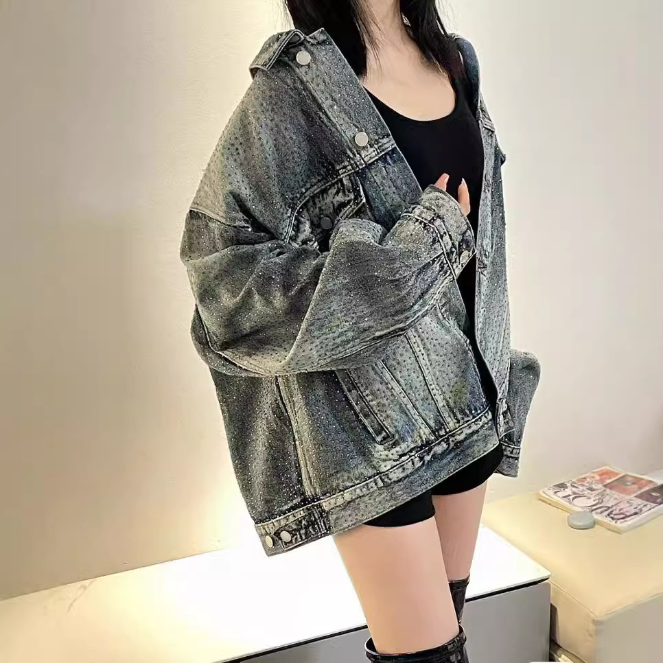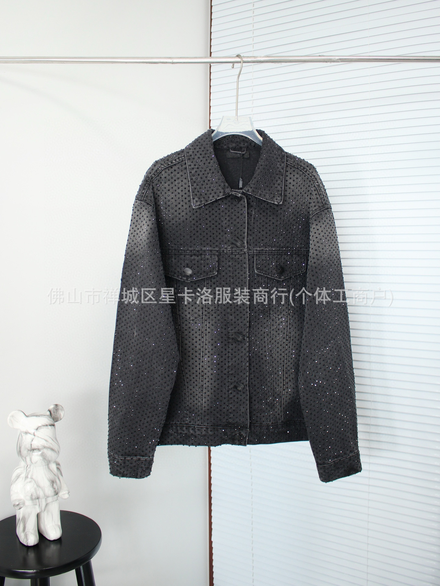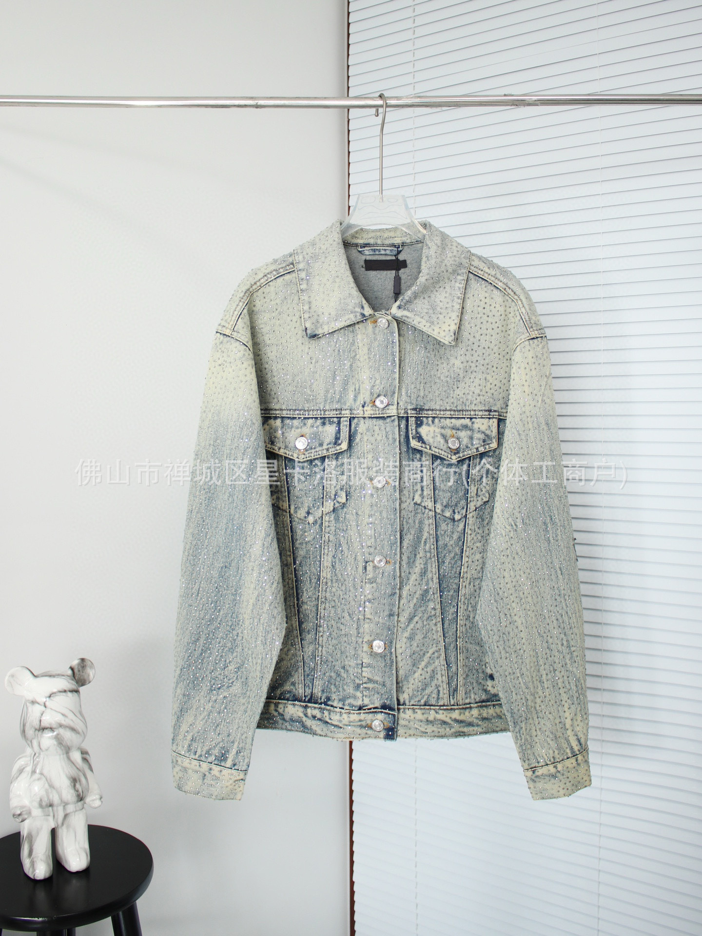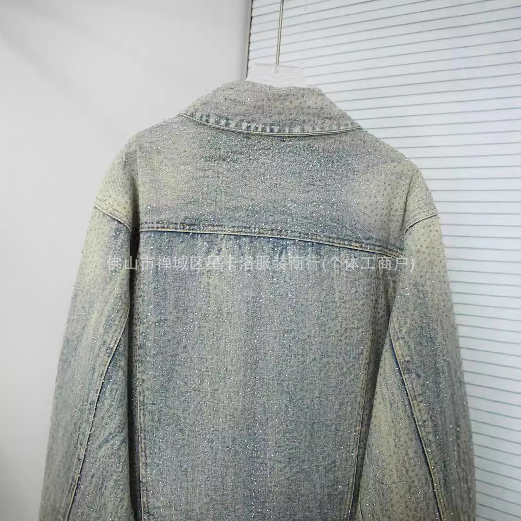 24ss High Version B Home 이른 가을 새로운 남자와 여자 부부의 중공업 풀 다이아몬드 핫 드릴링 데님 코트 재킷스토어 가기