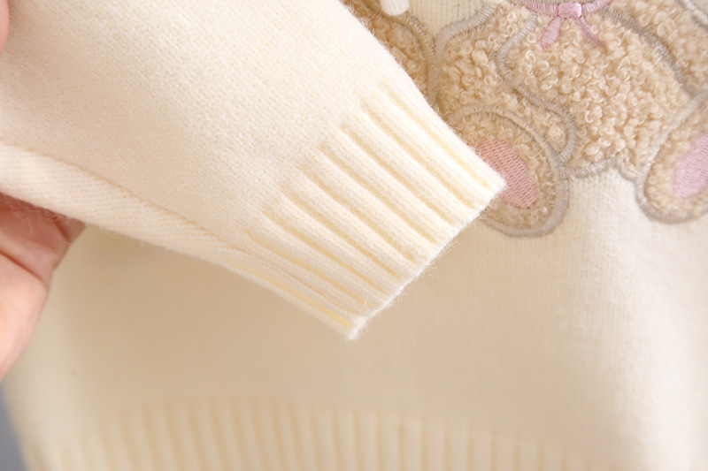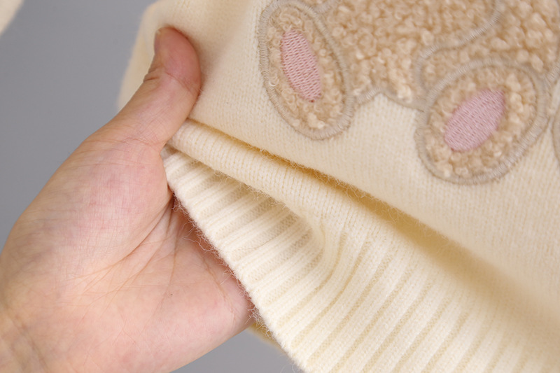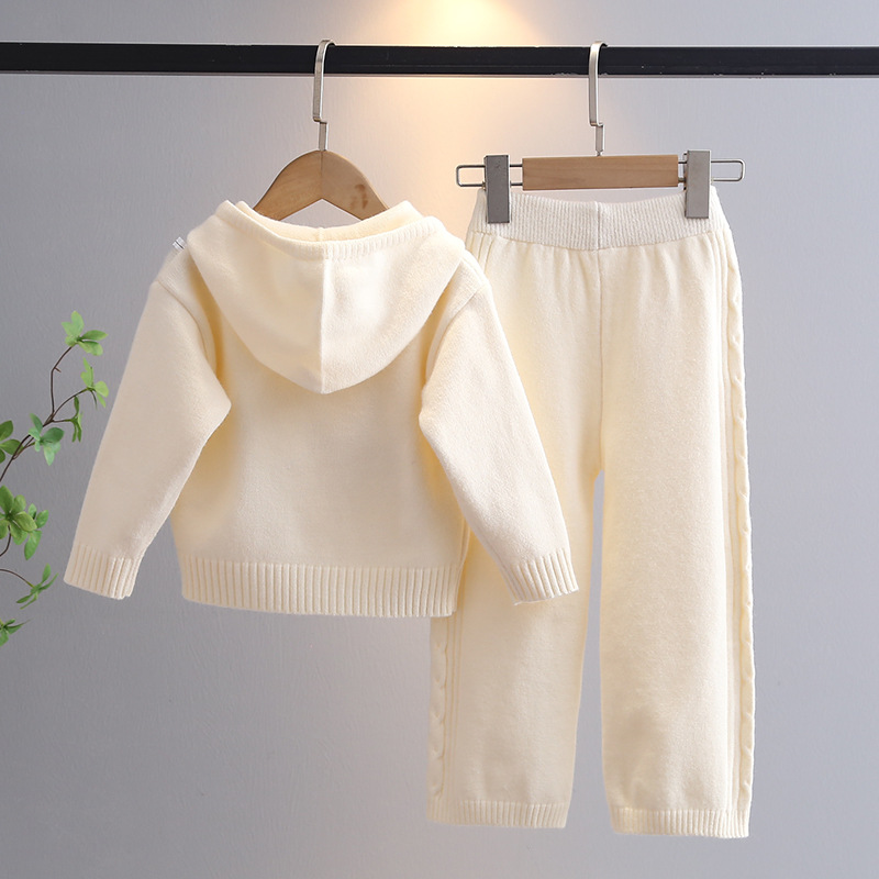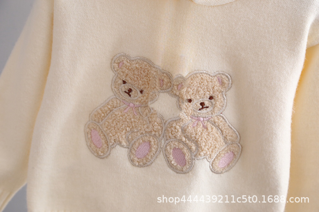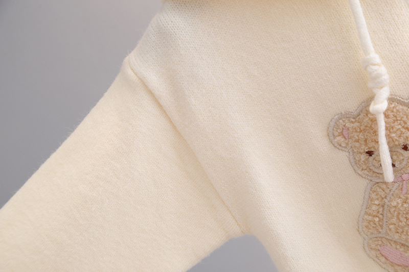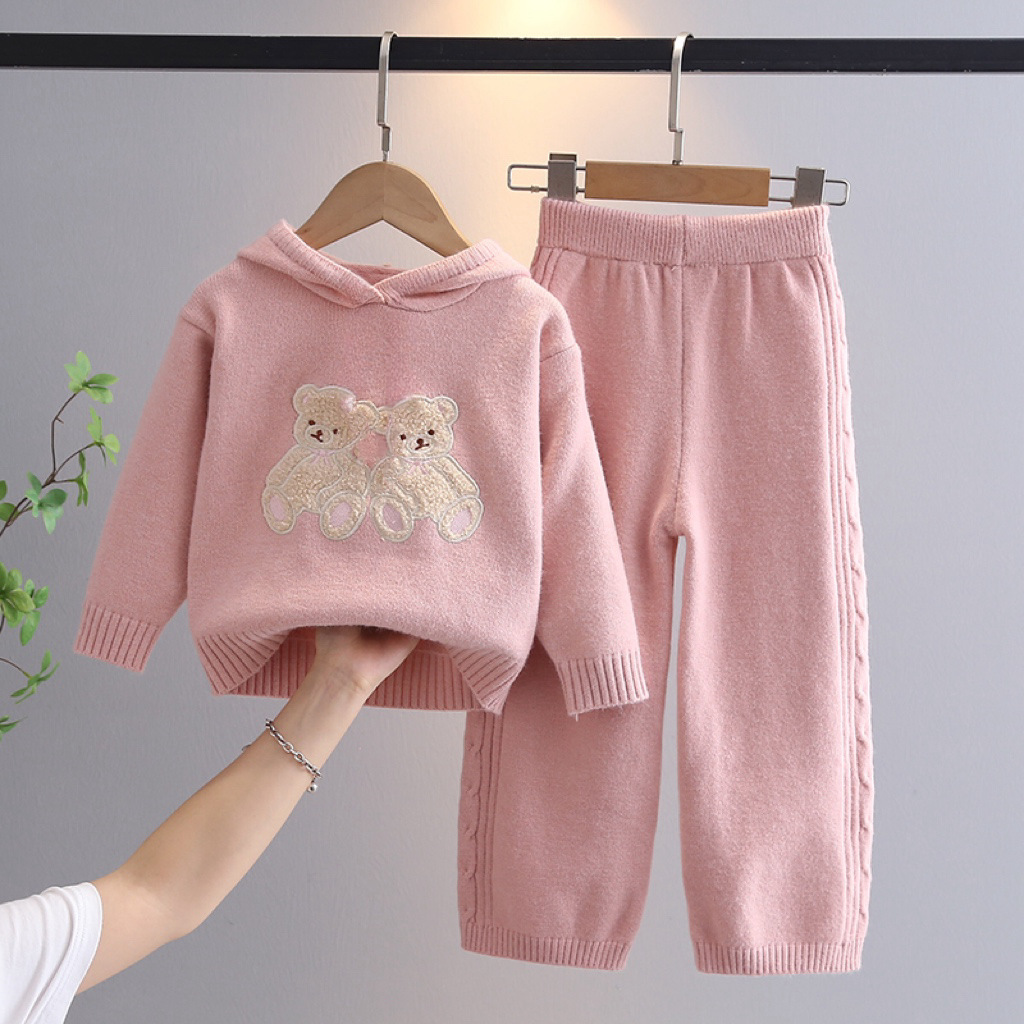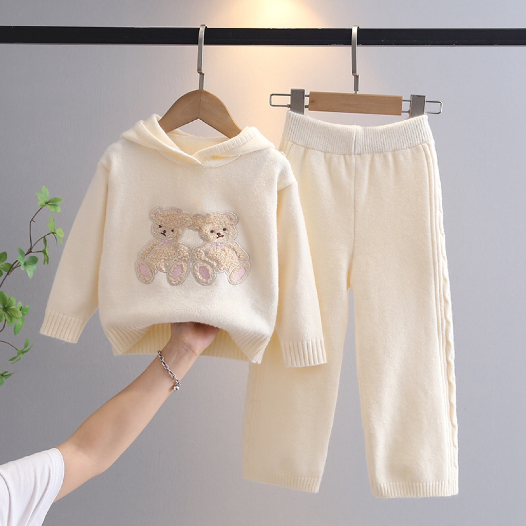 여자 스웨터 코트 2024 가을 새로운 어린이 만화 외국 스타일 곰 후드 한국 니트 투피스 세트