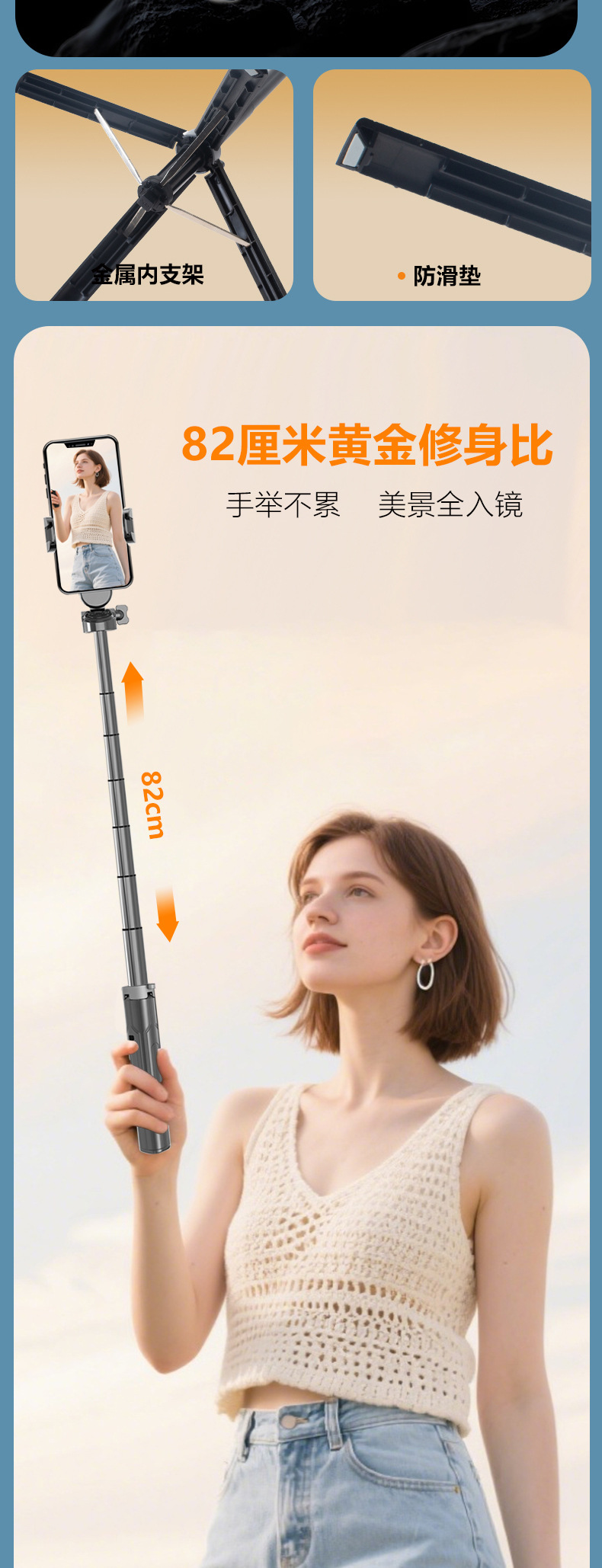 새로운 방진 셀카봉 블루투스 리모컨 82cm 신축 강화 스탠드 휴대용 삼각대 휴대폰 촬영 도구스토어 가기