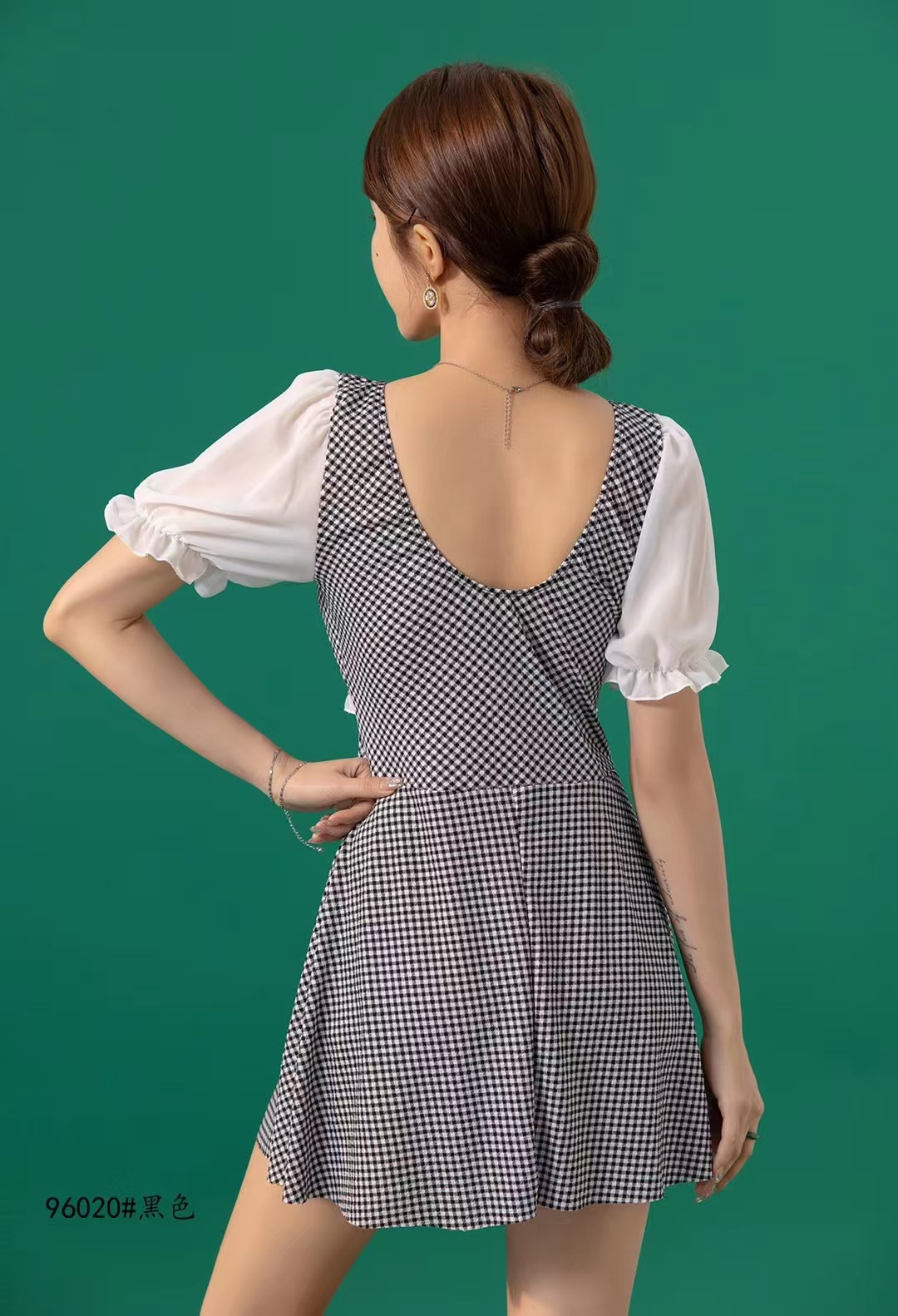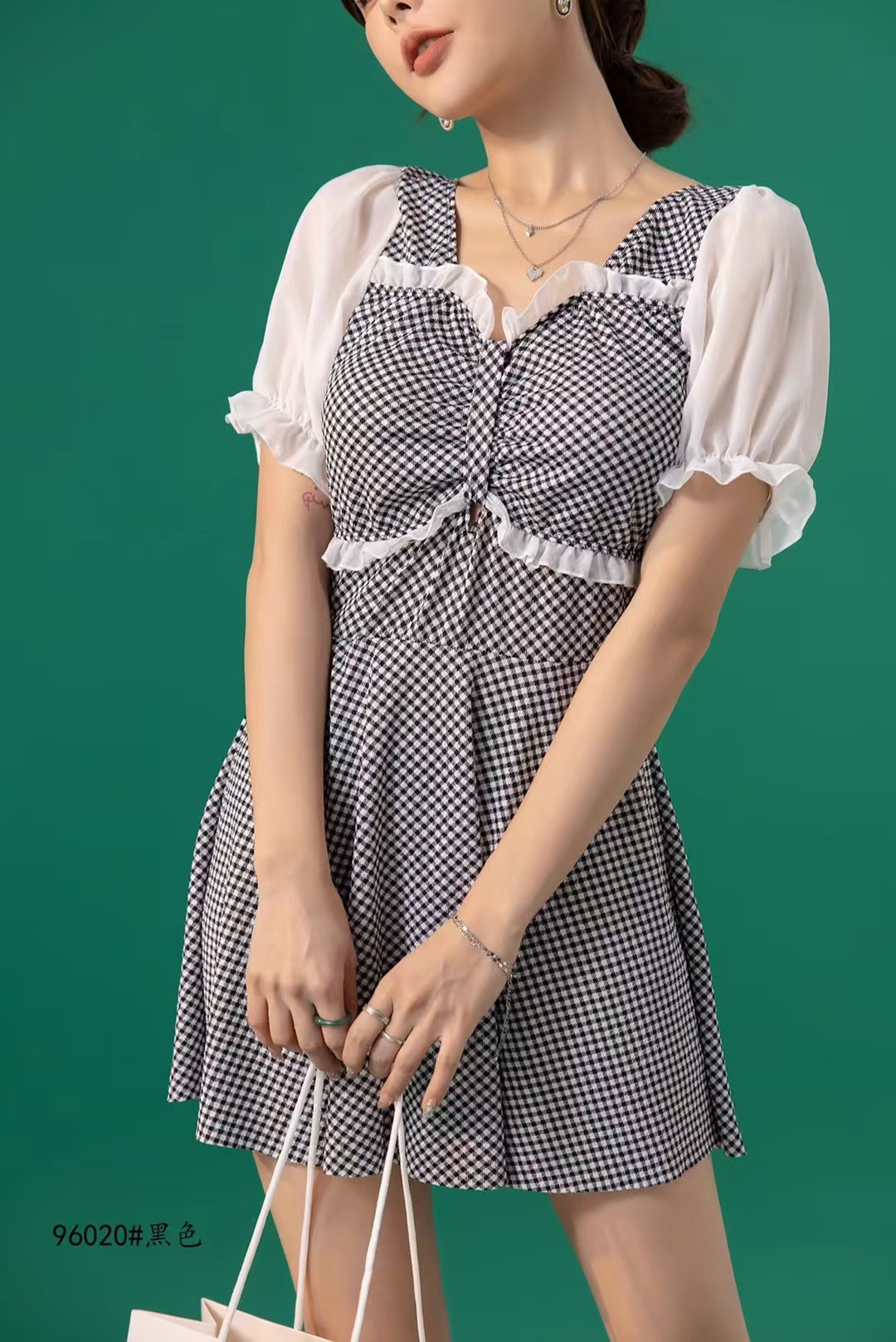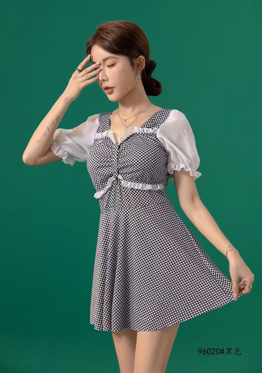 2024 새로운 격자 무늬 반팔 스커트 여성용 수영복 96020