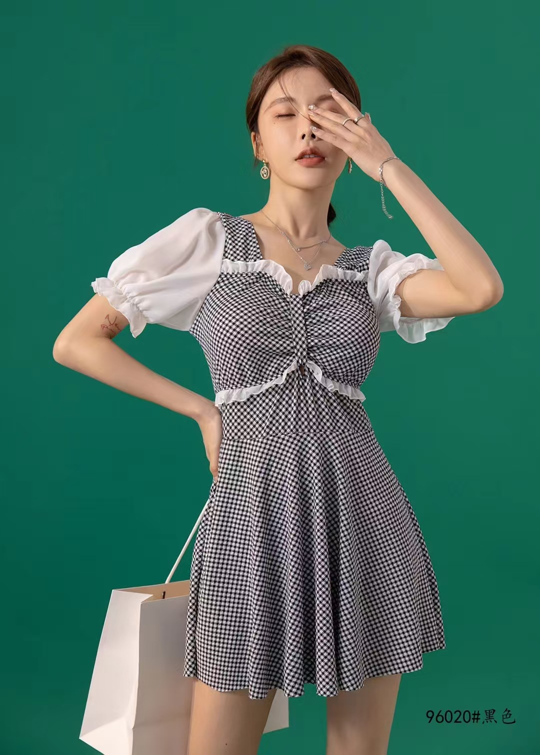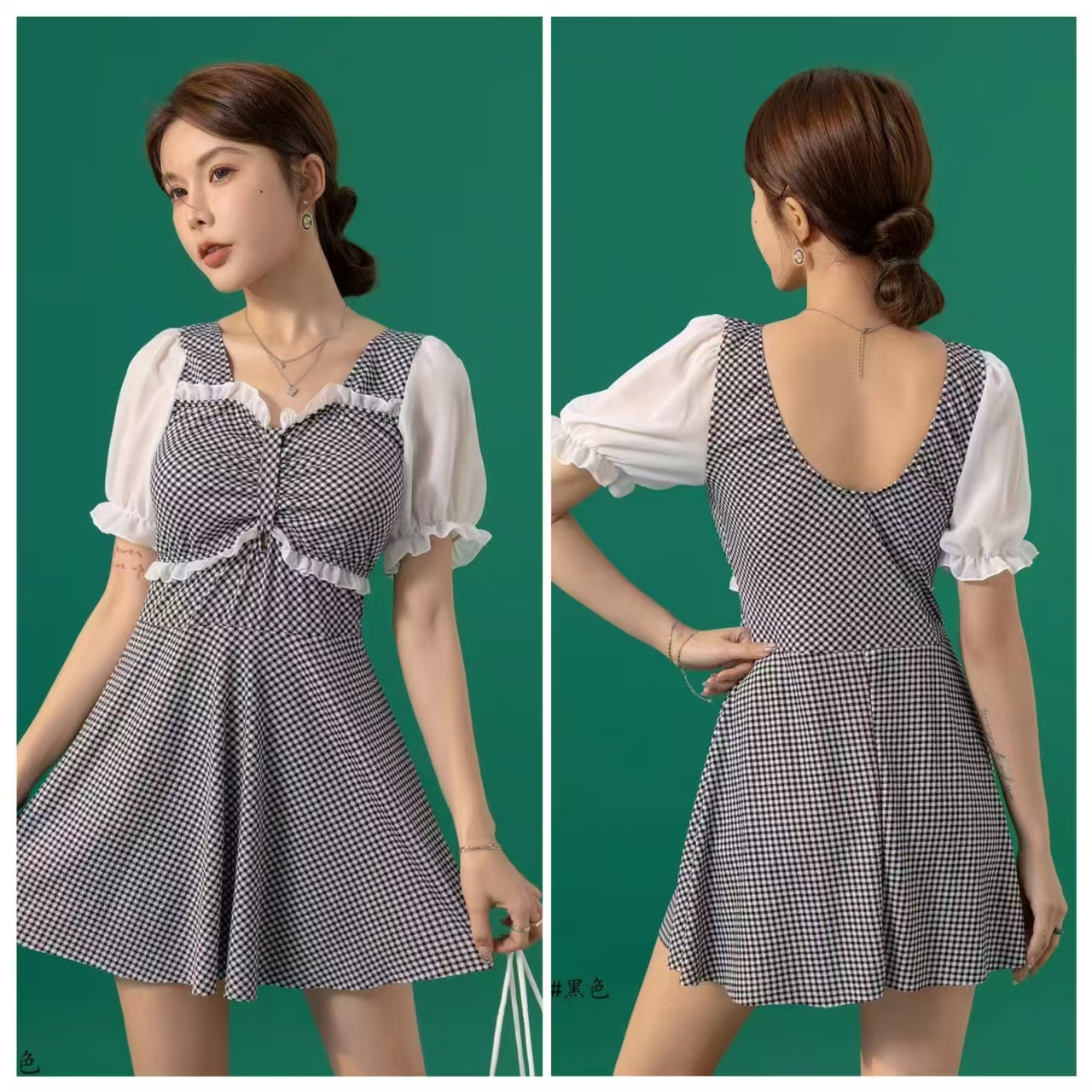 2024 새로운 격자 무늬 반팔 스커트 여성용 수영복 96020스토어 가기