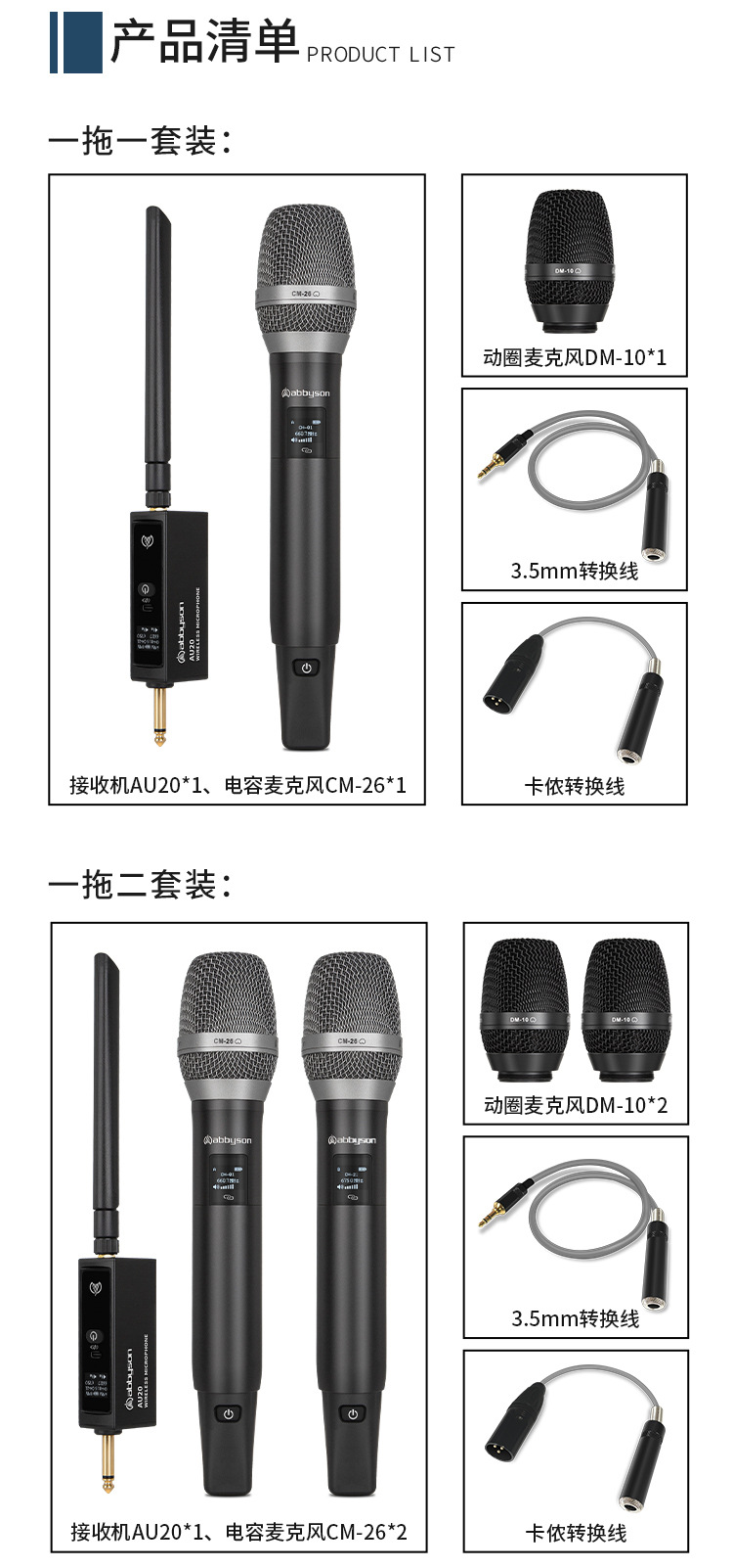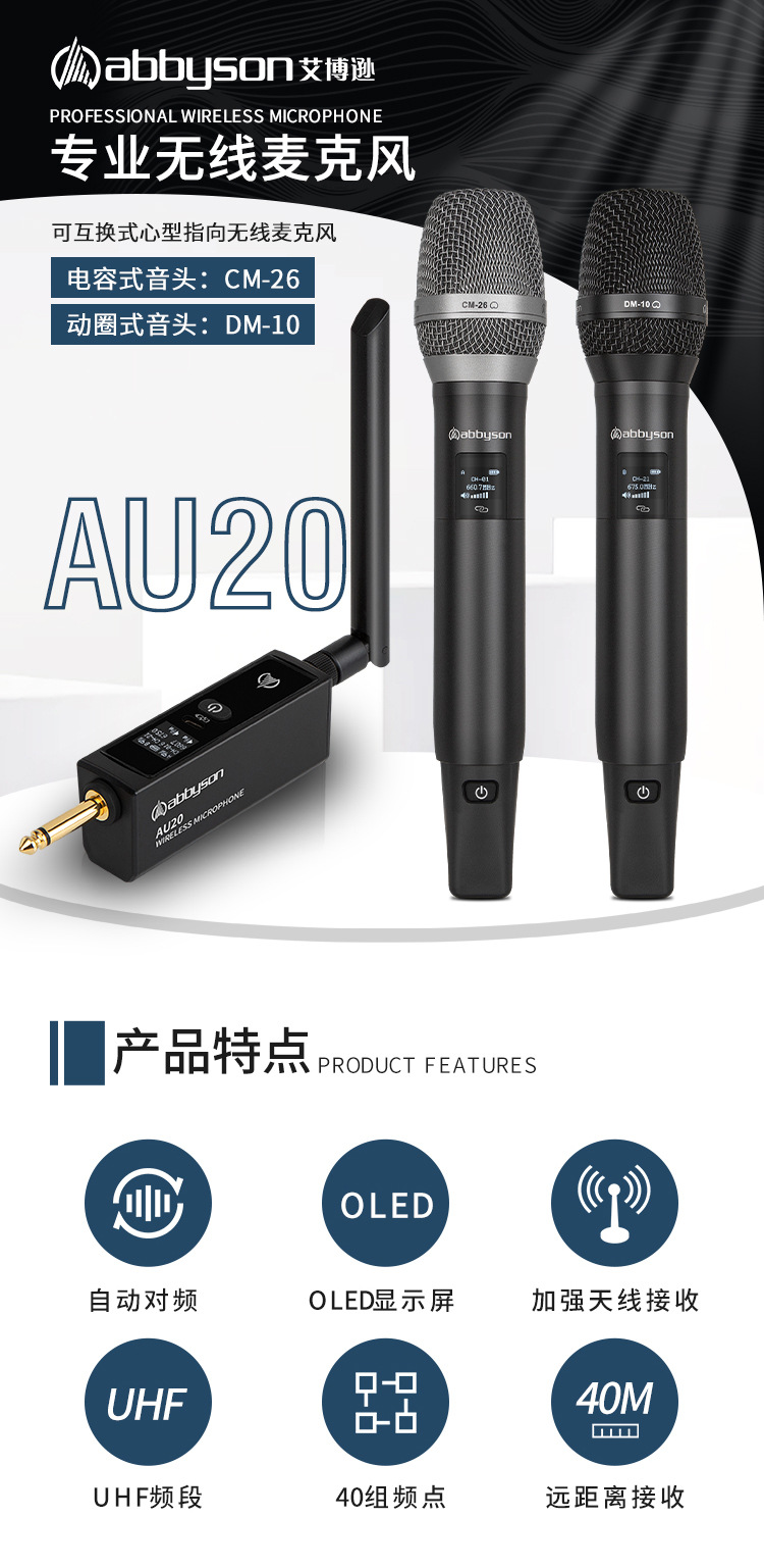 Abbotson AU20 전문 무선 콘덴서 마이크 라이브 방송 사운드 카드 야외 오디오 노래 동적 마이크 세트