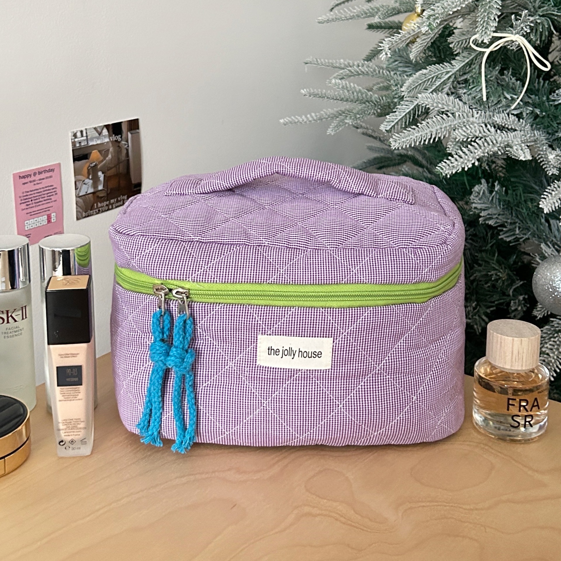 • 보라색 격자 무늬 보관 가방