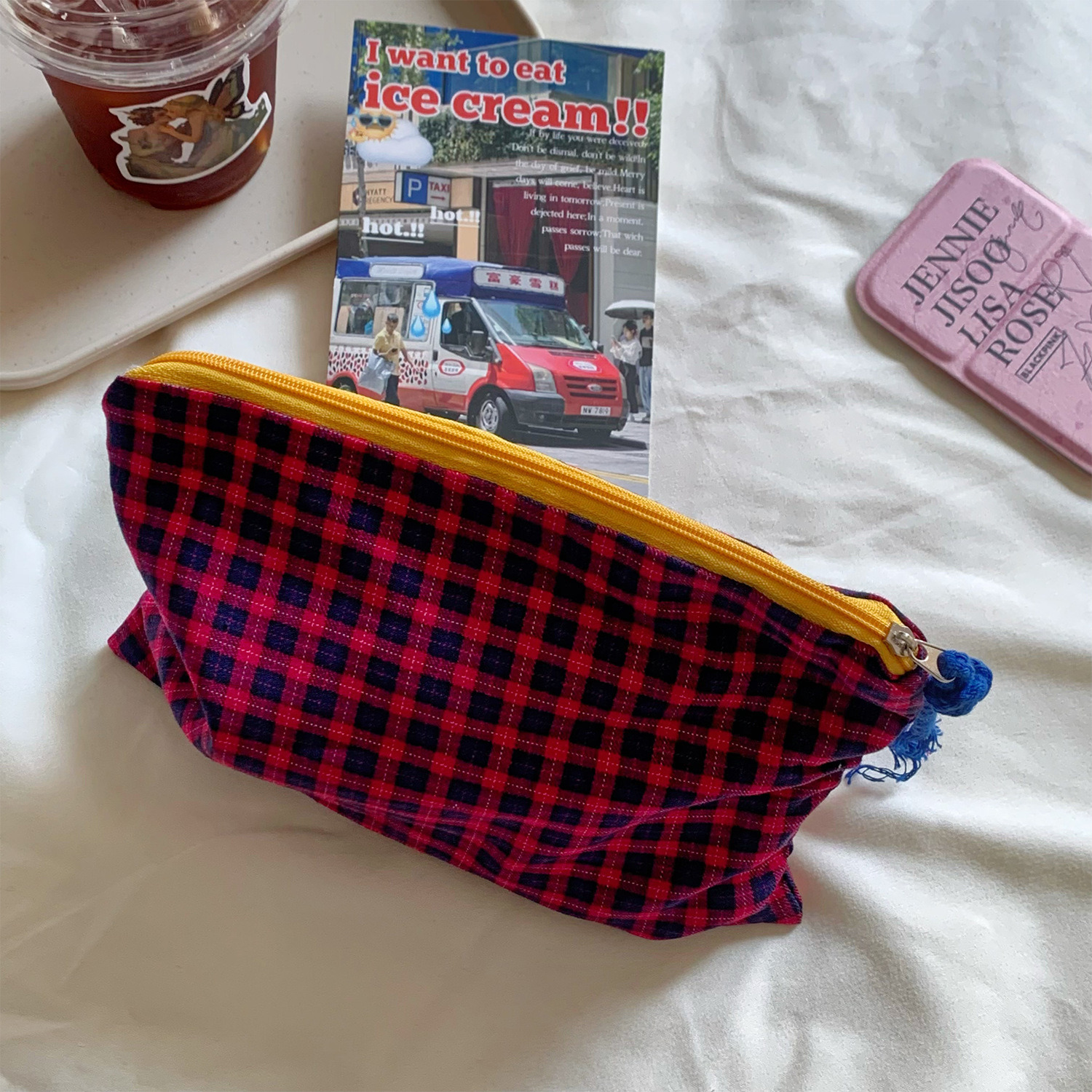 • 빨간색과 파란색 격자 무늬 필통