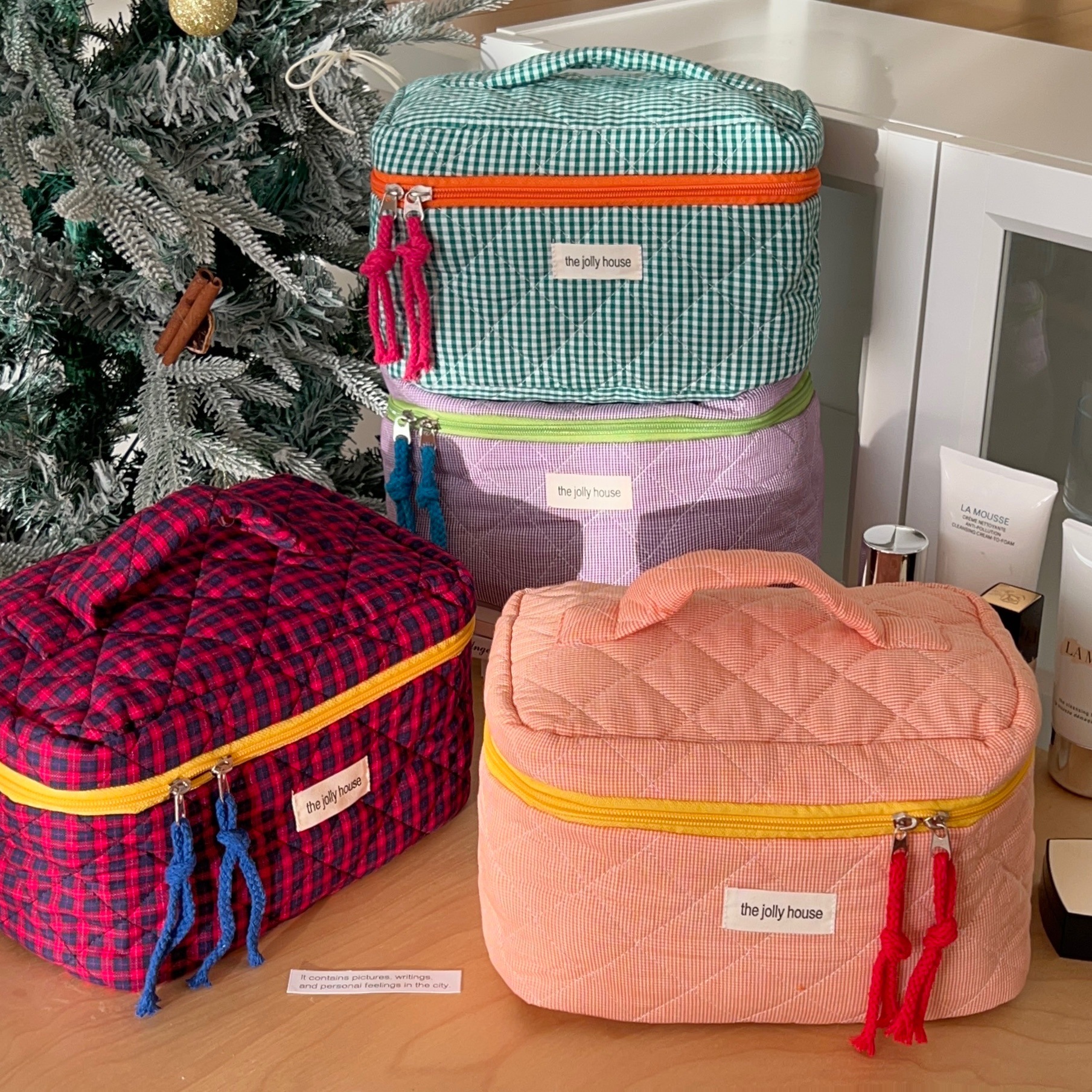 창조적 인 콘트라스트 컬러 체크 화장품 가방 여성용 Ins 대용량 화장품 브러시 보관 가방 휴대용 여행 가방