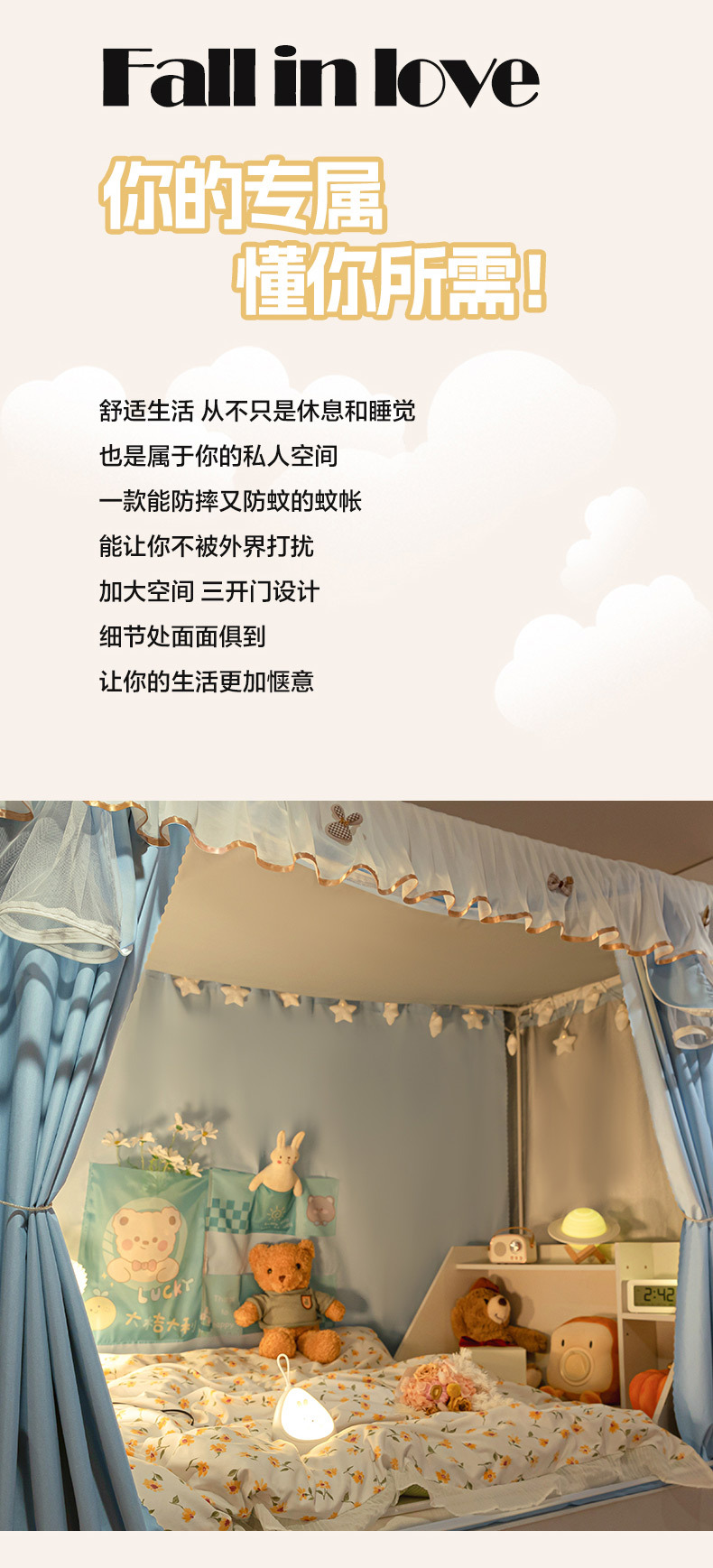 대학생 기숙사 소녀 공주 모기장 창 커튼 완전히 폐쇄 강한 음영 모든 포함 된 원피스 전용 상하 침대
