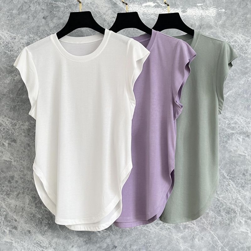 경량 요가 의류 최고 여성 여름 슬림 핏 슬리밍 스포츠 달리기 빠른 건조 통기성 피부 친화적 인 피트니스 티셔츠 밀크 실크