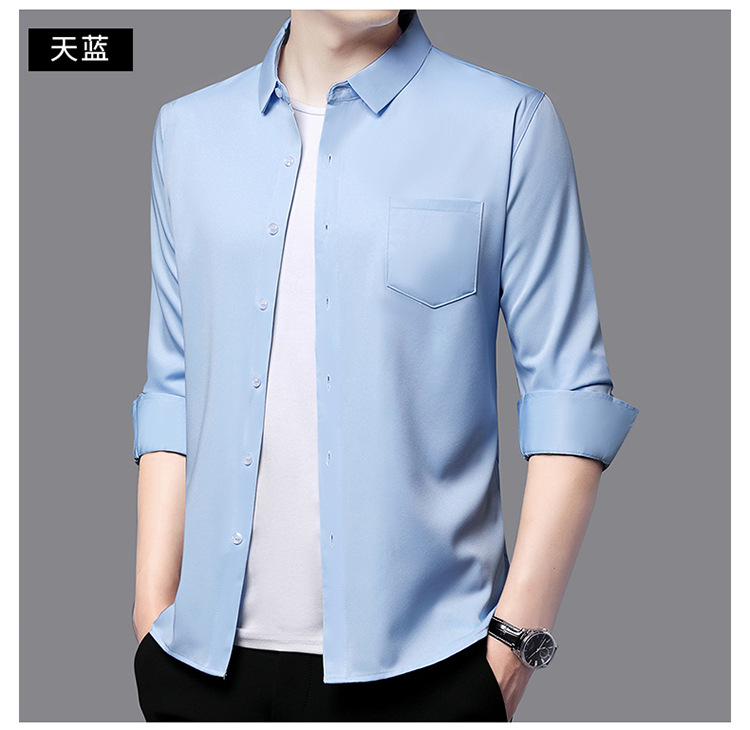 남자 캐주얼 라이트 비즈니스 셔츠 편안한 올 매치 긴 소매 POIO 셔츠 단색 간단한 빛 럭셔리 라인 카디건 탑