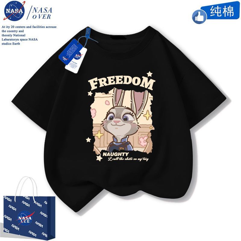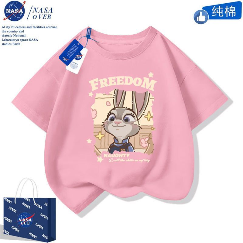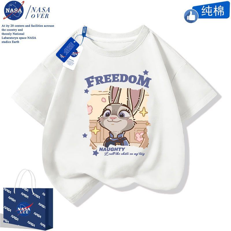 NASA 공동 귀여운 주디 코튼 반팔 티셔츠 소년과 소녀 만화 Zootopia 인쇄 트렌디 탑