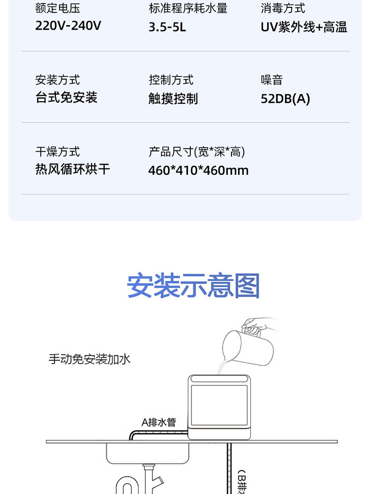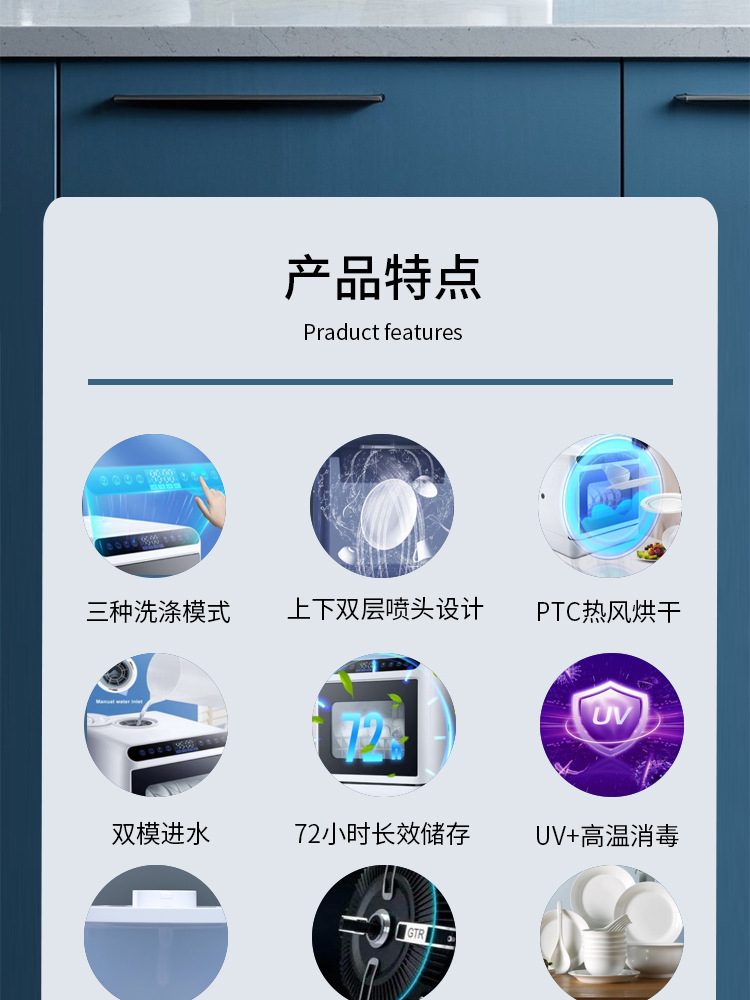 식기 세척기 데스크탑 가정용 소형 설치가 필요 없는 완전 자동 고압 스프레이 지능형 소독 및 건조 국경 대외 무역스토어 가기