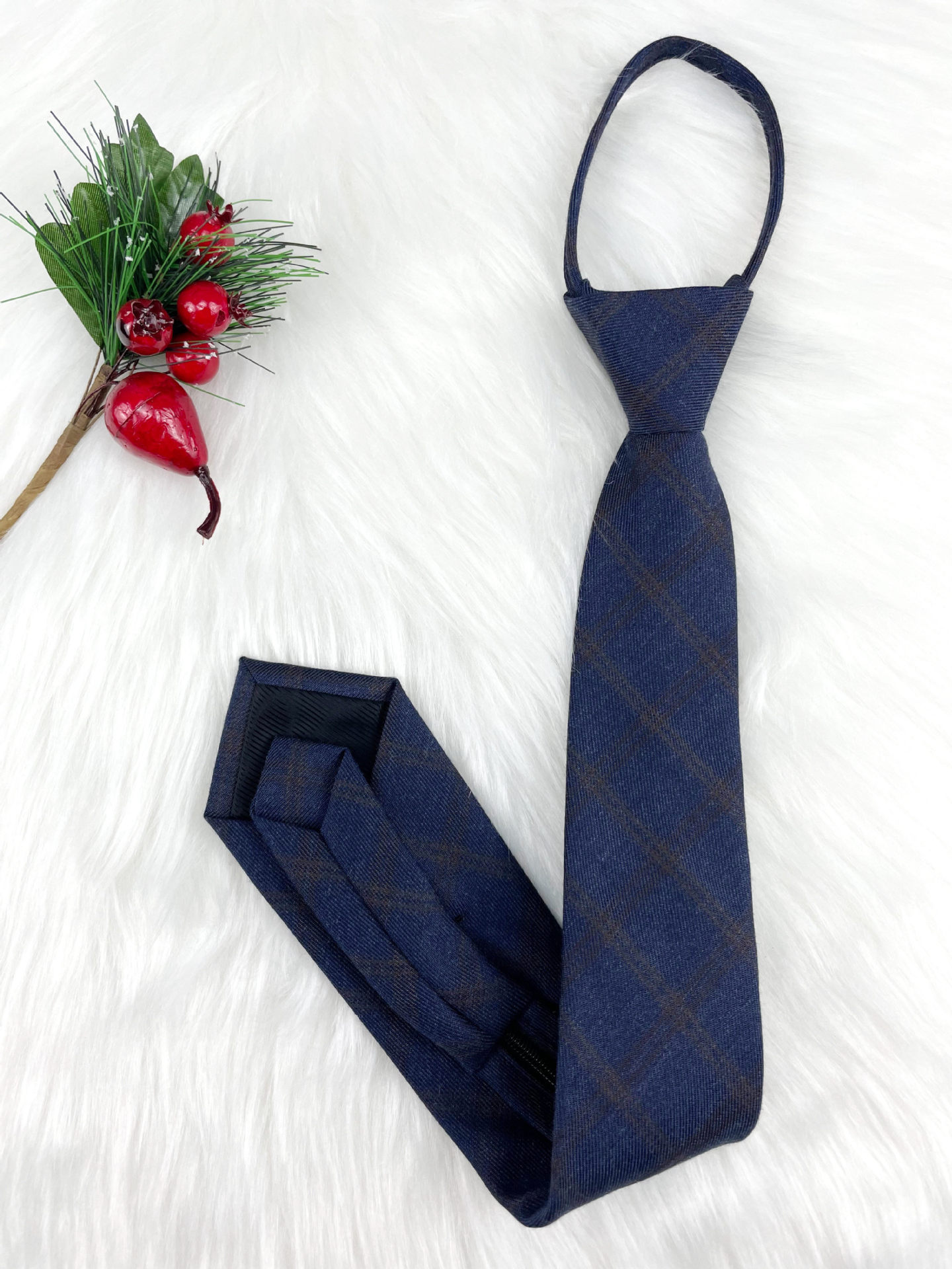 • 네이비 블랙 체크 무늬 코튼 지퍼 타이*48cm
