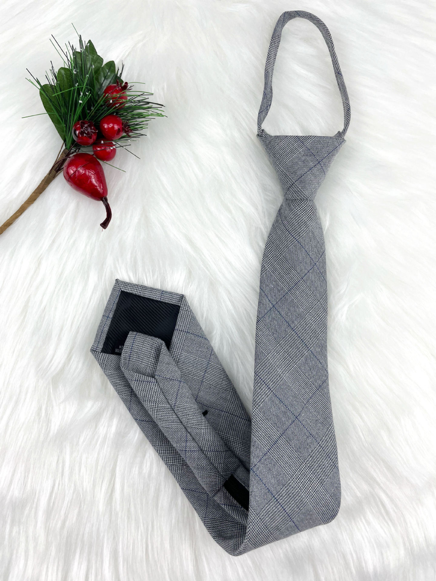 • 아이언 블루 그레이 체크 무늬 코튼 지퍼 타이*48cm