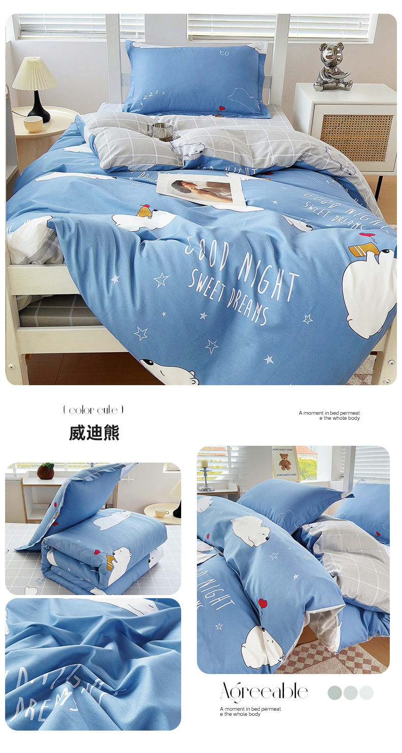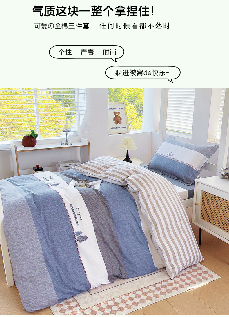 학생 기숙사 순면 3종 세트, 순면 이불 커버, 기숙사 6종 세트, 대학생 2층 침대 이불심 도매