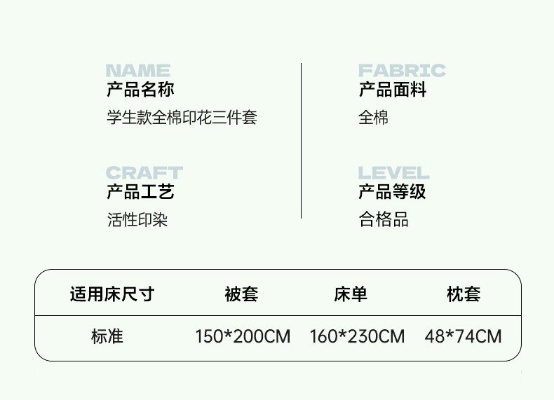 학생 기숙사 순면 3종 세트, 순면 이불 커버, 기숙사 6종 세트, 대학생 2층 침대 이불심 도매스토어 가기