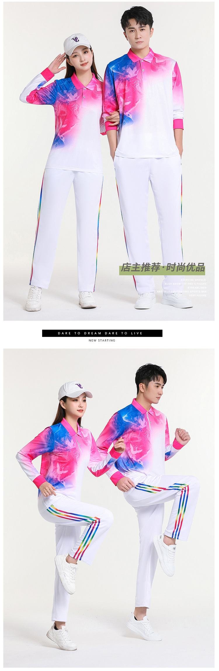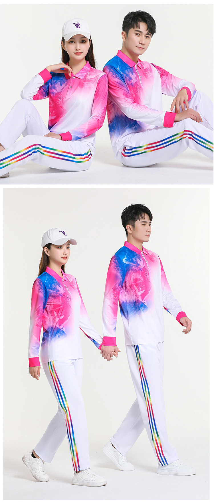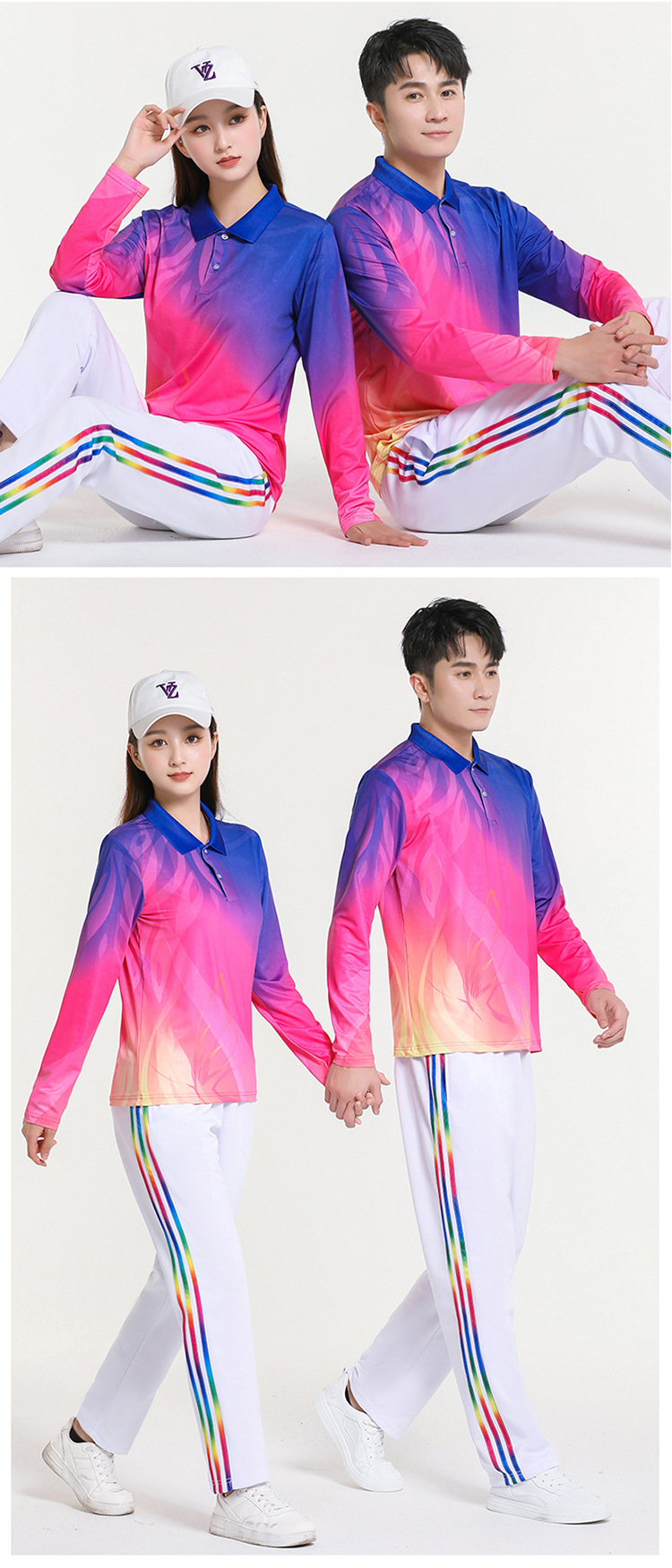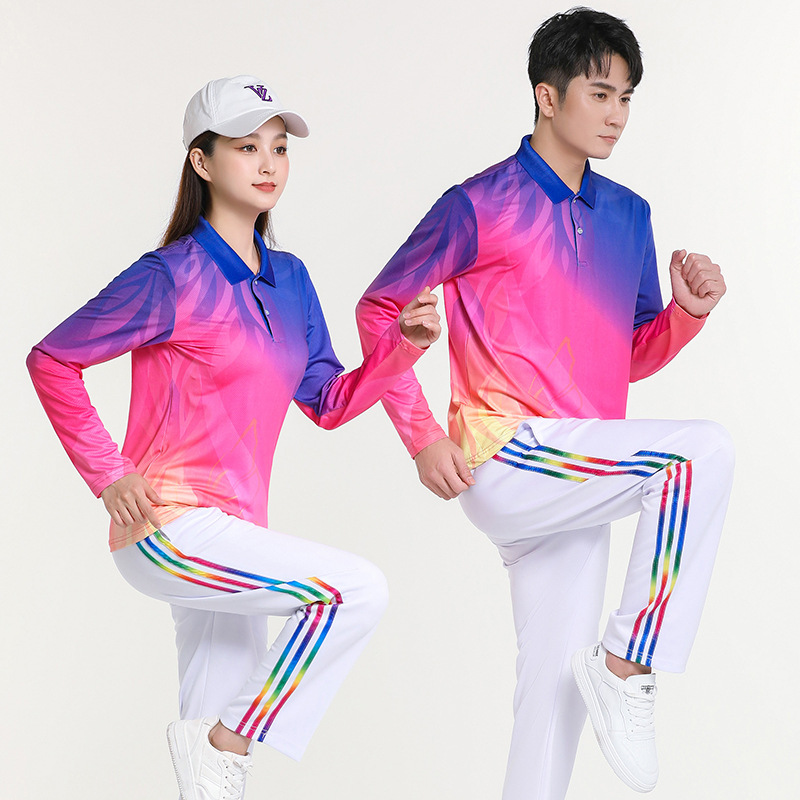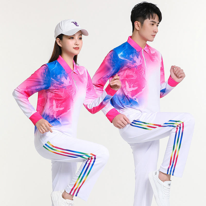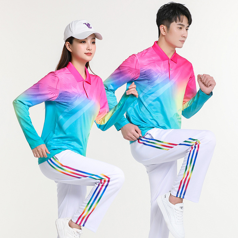 걷는 긴 소매 티셔츠 스퀘어 댄스 의류 스포츠웨어 에어로빅 소프트 볼 세트 그룹 구매 인쇄 로고스토어 가기