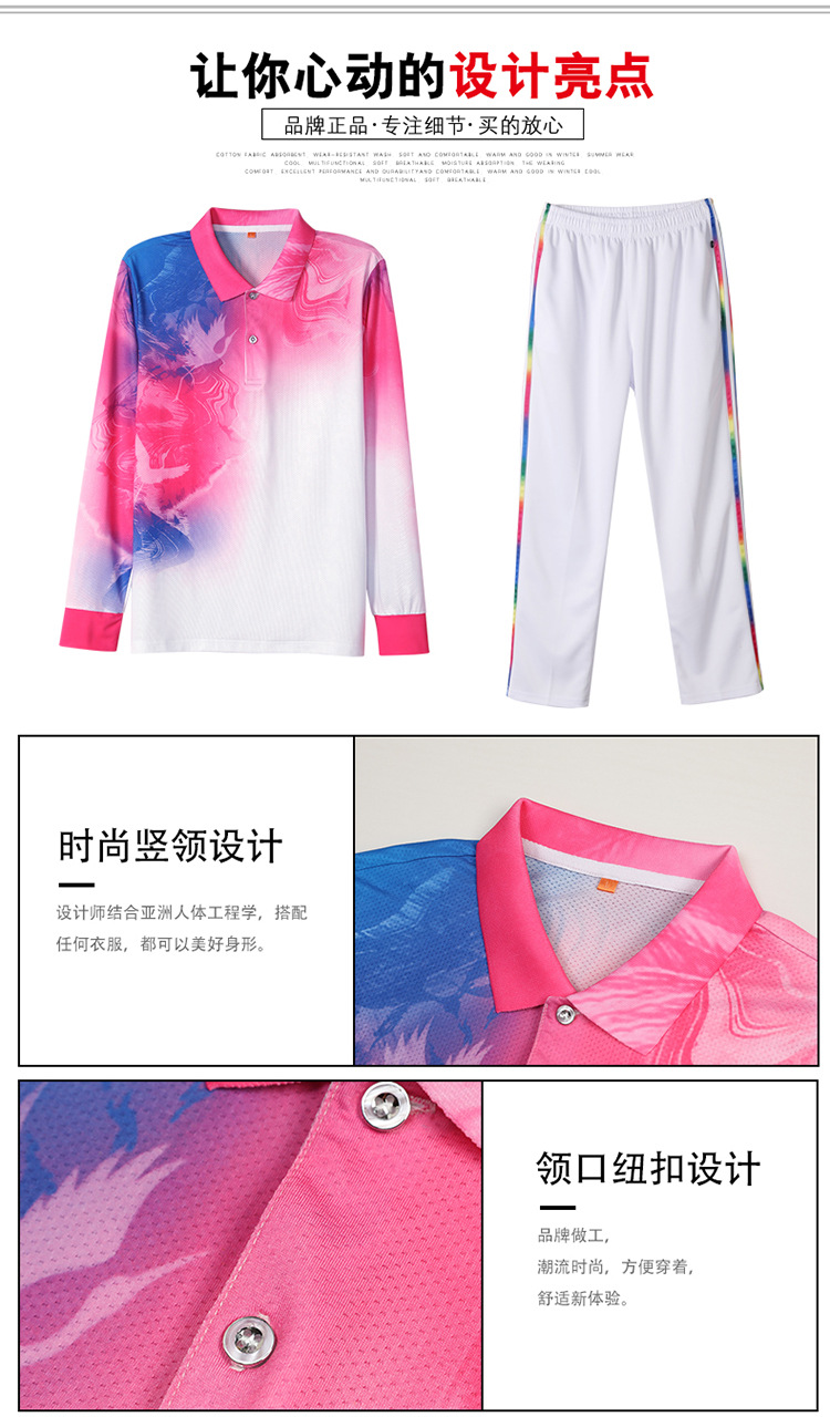 걷는 긴 소매 티셔츠 스퀘어 댄스 의류 스포츠웨어 에어로빅 소프트 볼 세트 그룹 구매 인쇄 로고