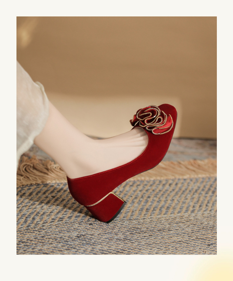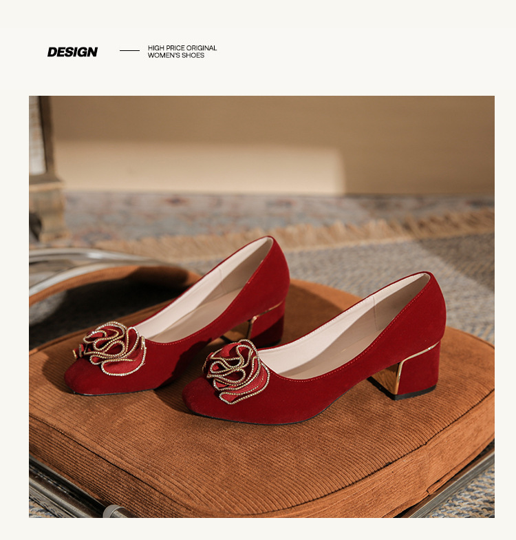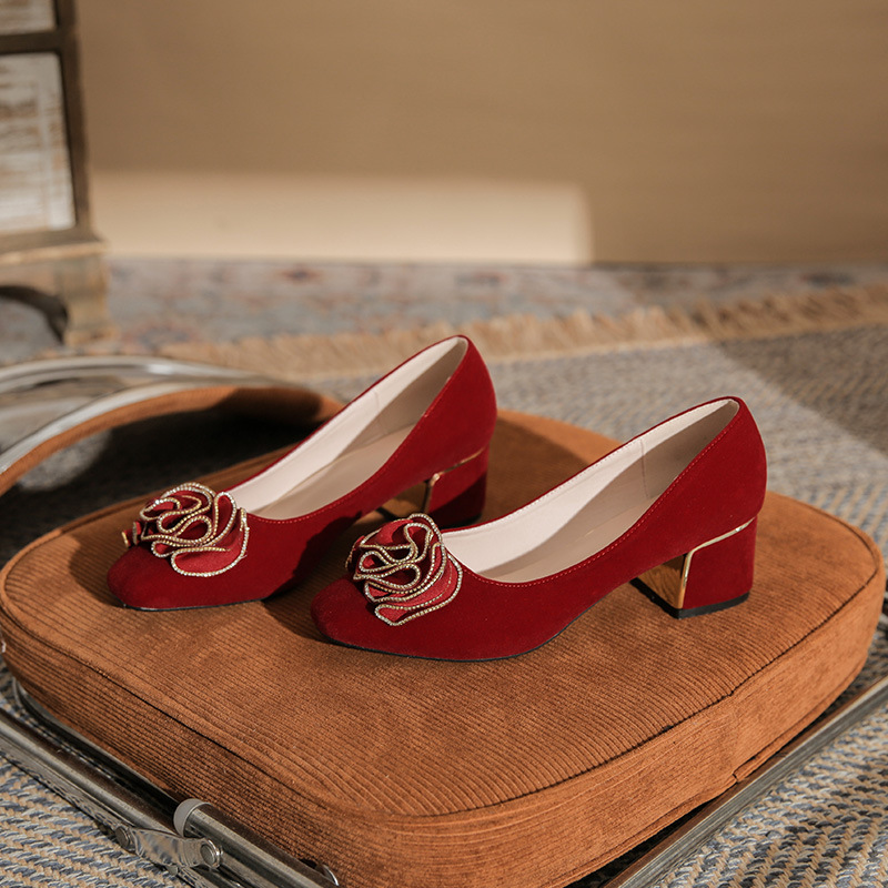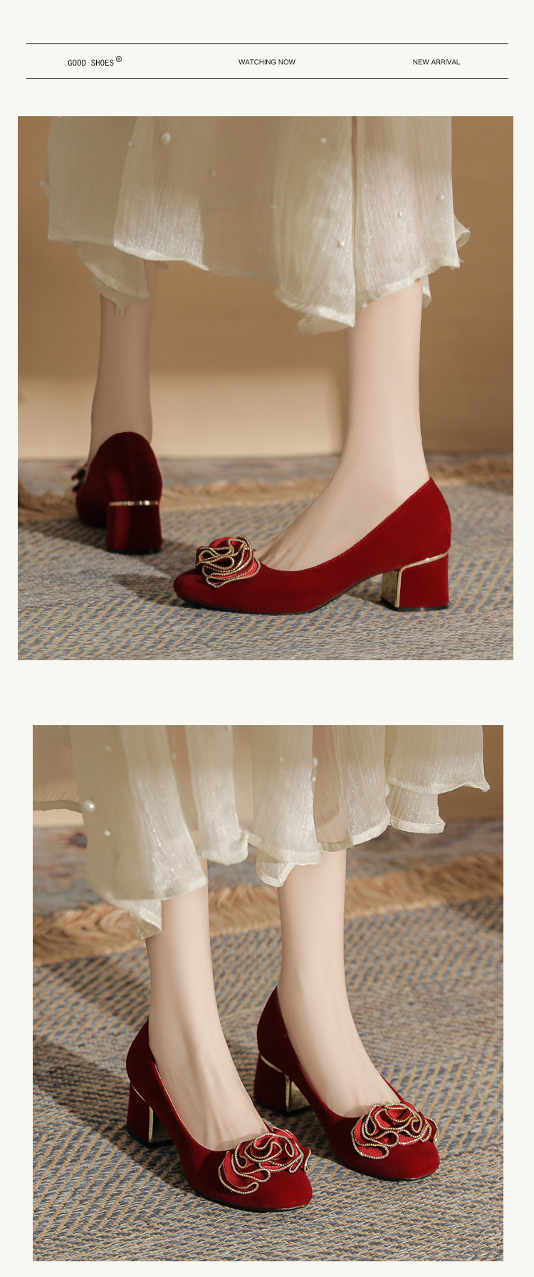 2024 새로운 사각형 머리 두꺼운 뒤꿈치 하이힐 플러스 사이즈 플러스 뚱뚱한 넓어진 결혼식 신발 웨딩 신부 신발 쇼 의류스토어 가기