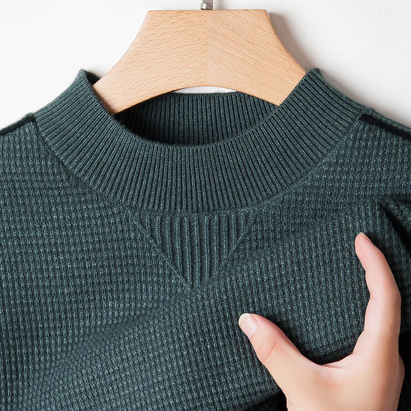 남자 청소년 하이 엔드 하프 터틀넥 탑 가을 및 겨울 뉴 크로스 자카드 스웨터 두꺼운 베이스 니트 긴팔 스웨터