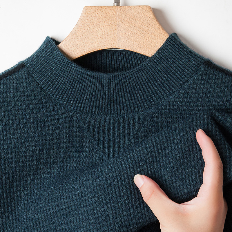 남자 청소년 하이 엔드 하프 터틀넥 탑 가을 및 겨울 뉴 크로스 자카드 스웨터 두꺼운 베이스 니트 긴팔 스웨터스토어 가기