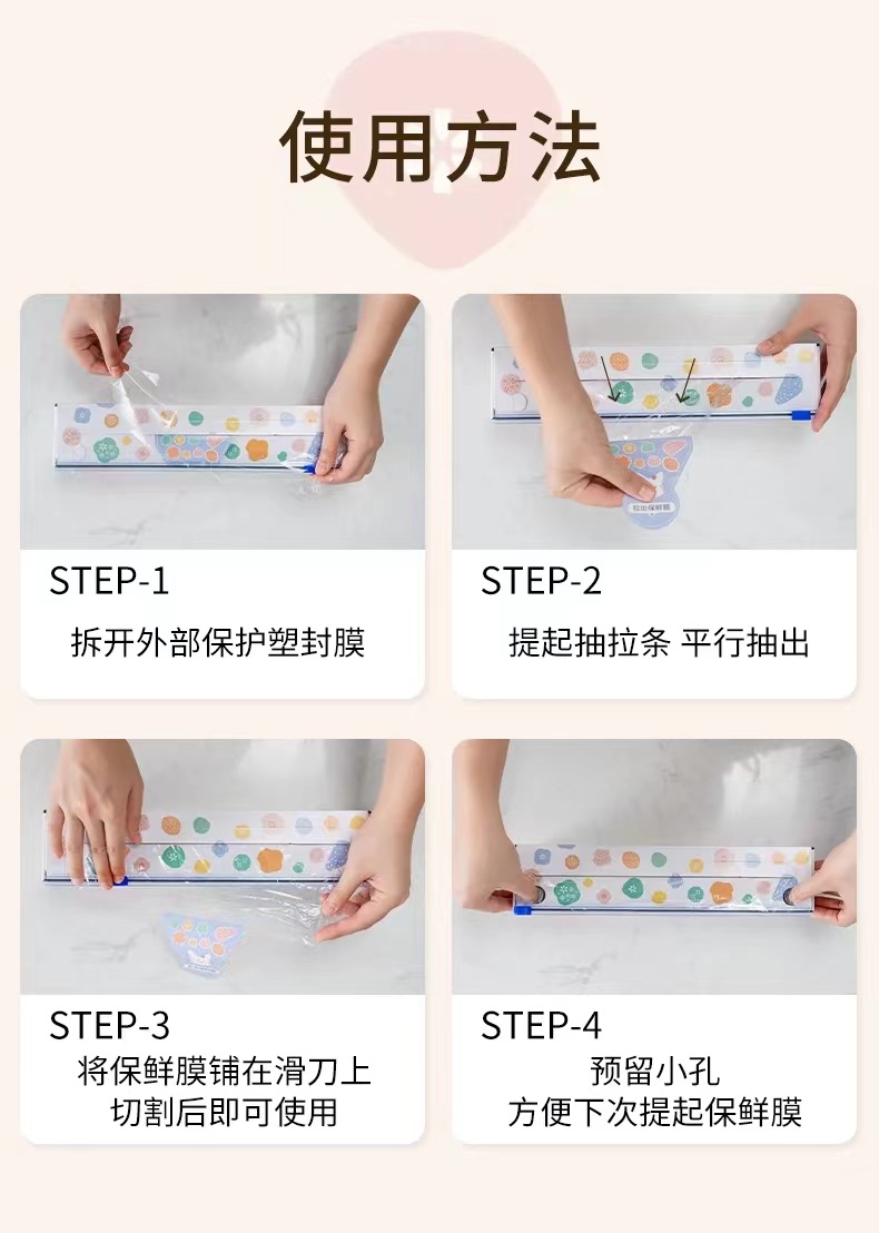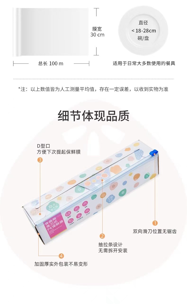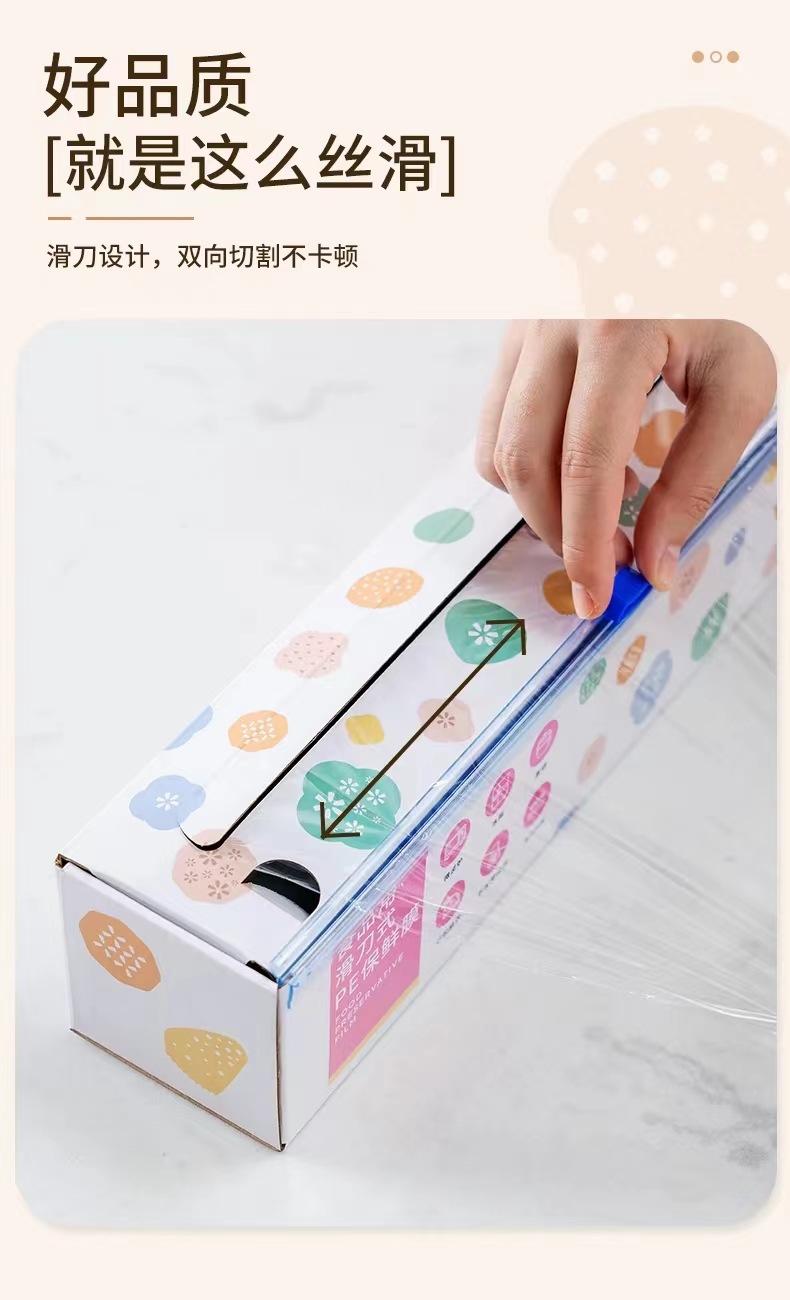 슬라이딩 나이프 집착 필름 등급 PE 집착 필름 커터 주방 일회용 과일 및 야채 식품 커버 접착 필름