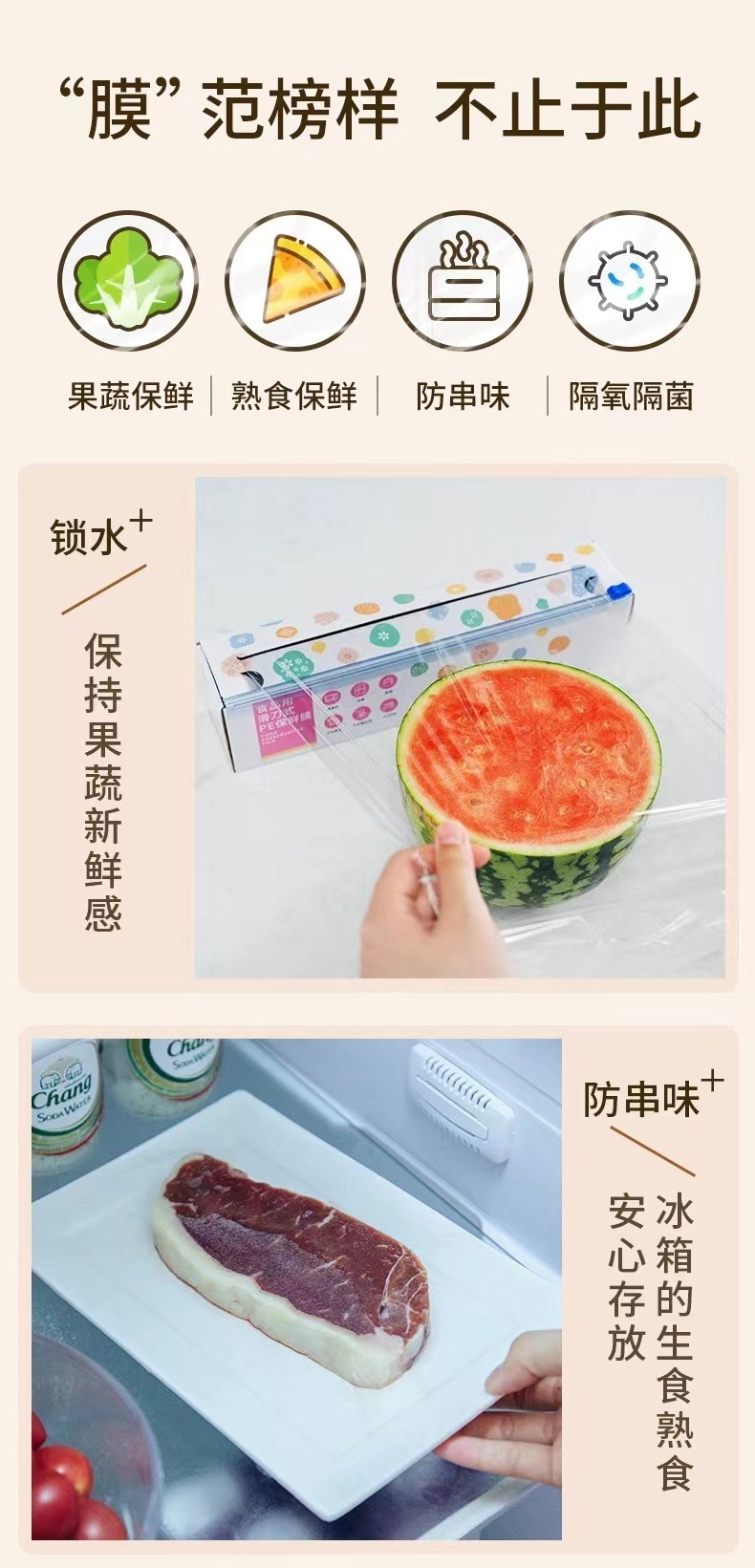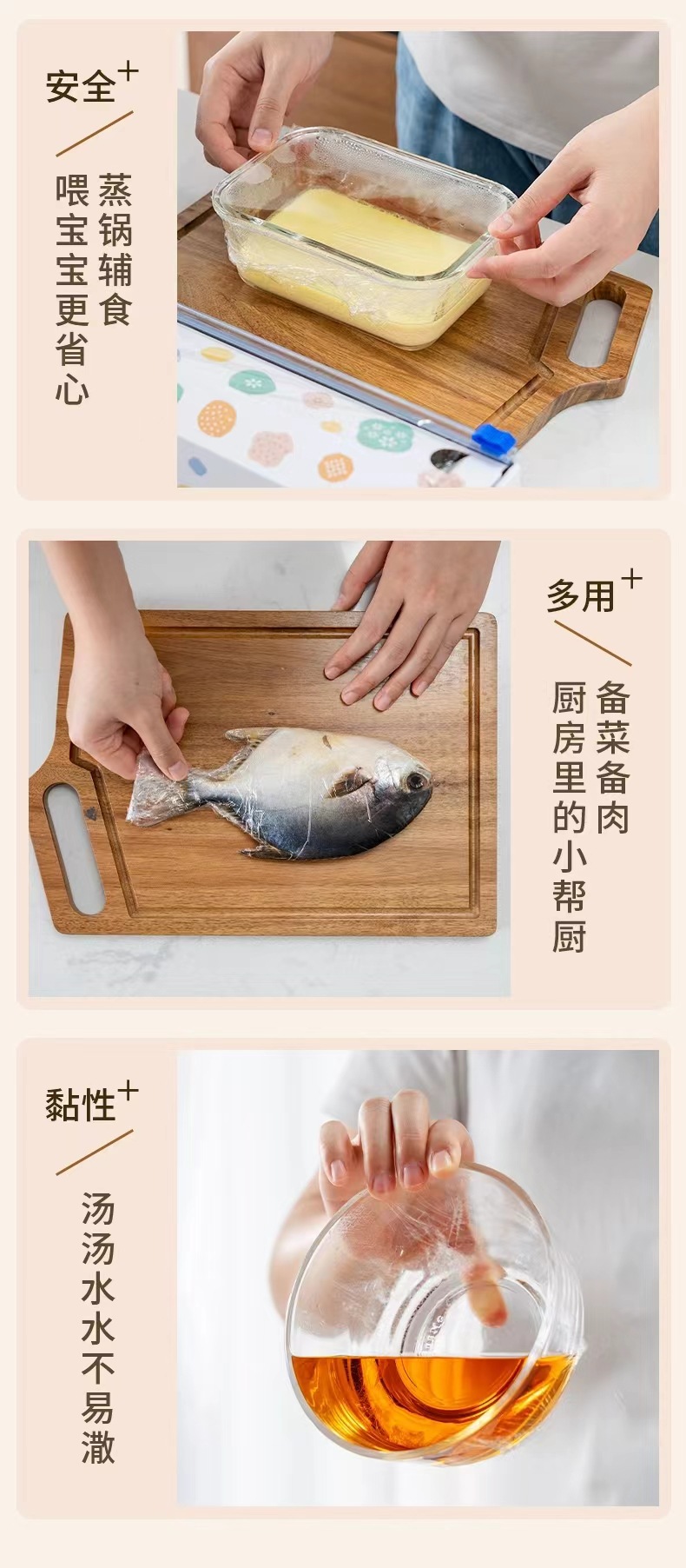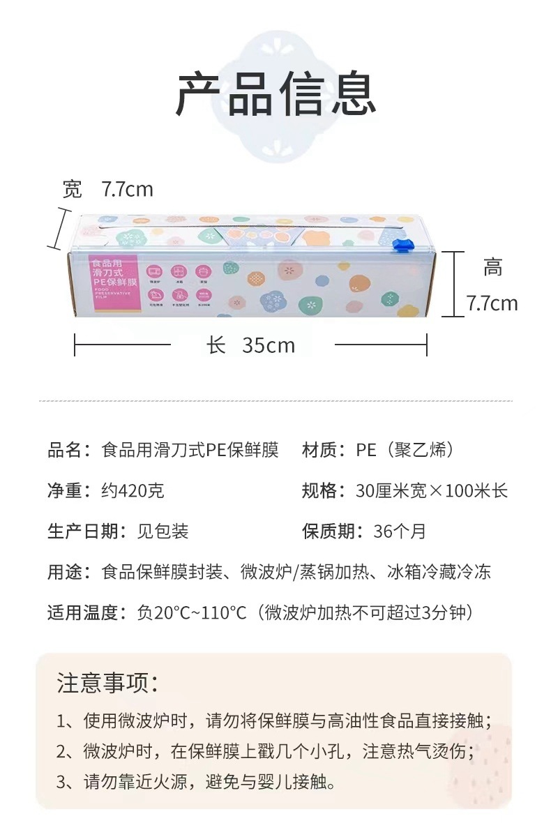 슬라이딩 나이프 집착 필름 등급 PE 집착 필름 커터 주방 일회용 과일 및 야채 식품 커버 접착 필름