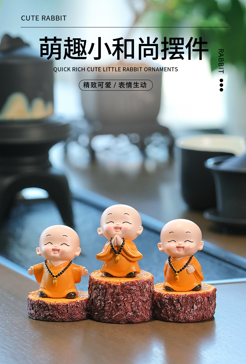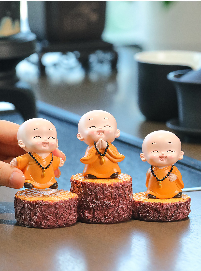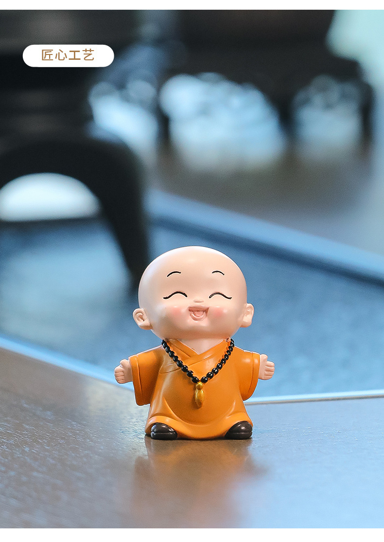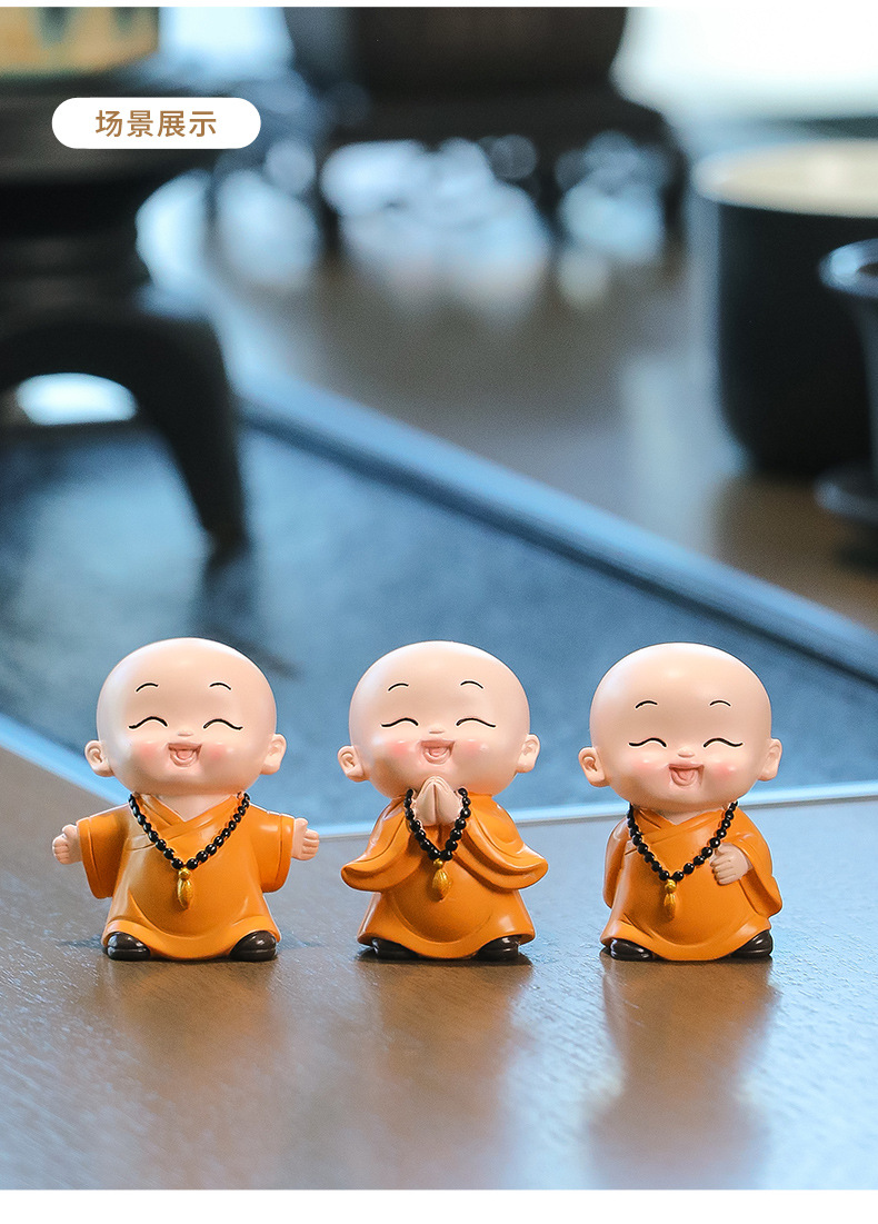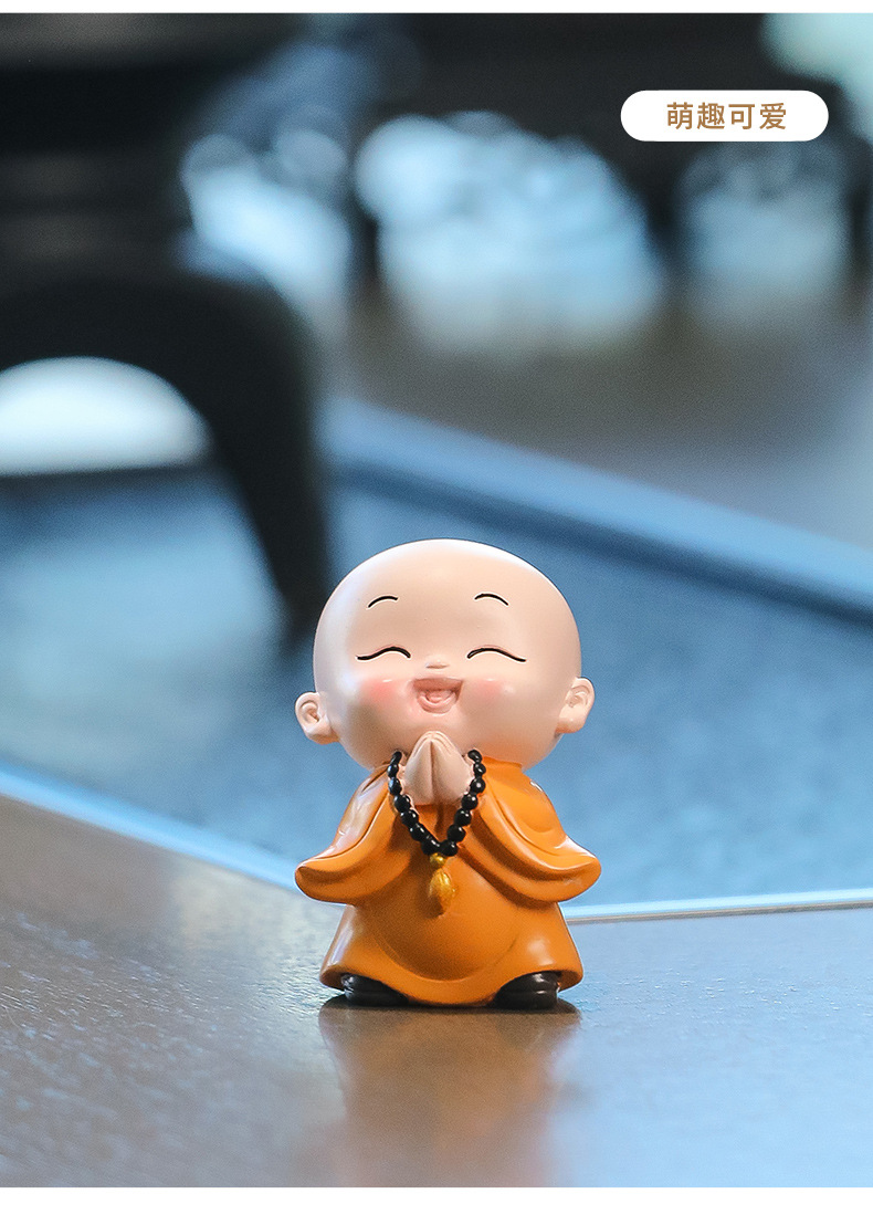중국 선 스타일 작은 몽크 차 테이블 장식품 차 테이블 장식 사무실 바탕 화면 장식 부처님 스타일 귀여운 작은 스님