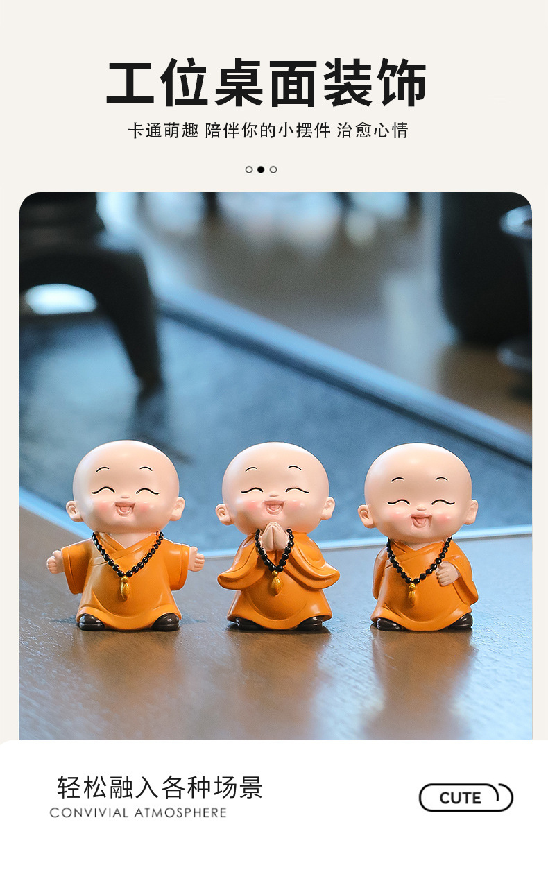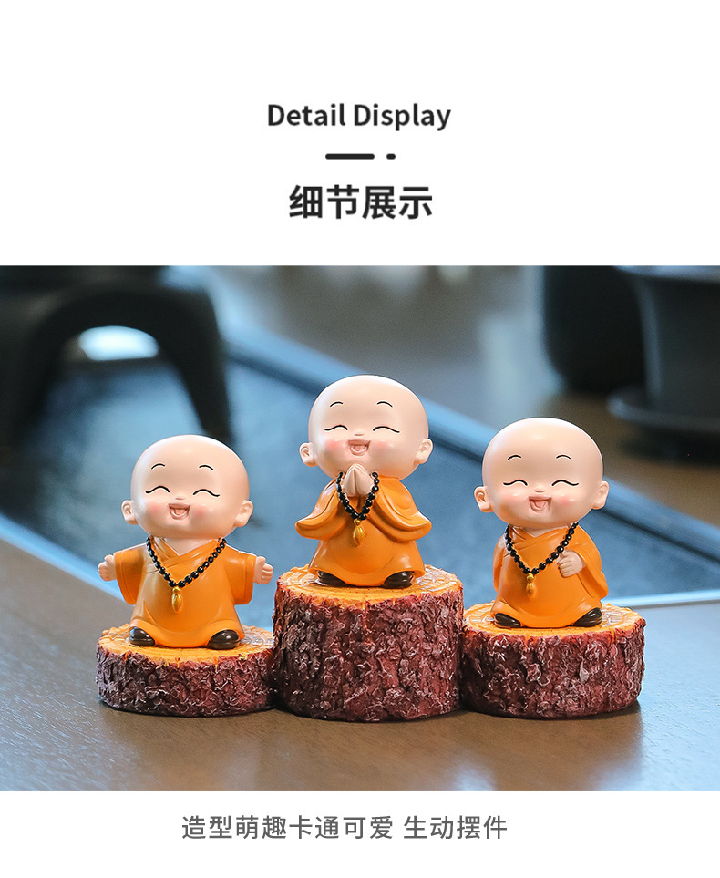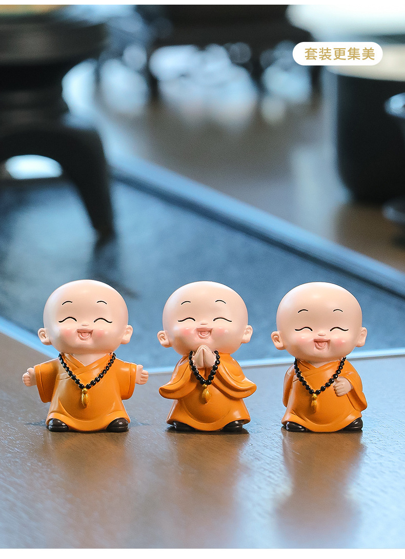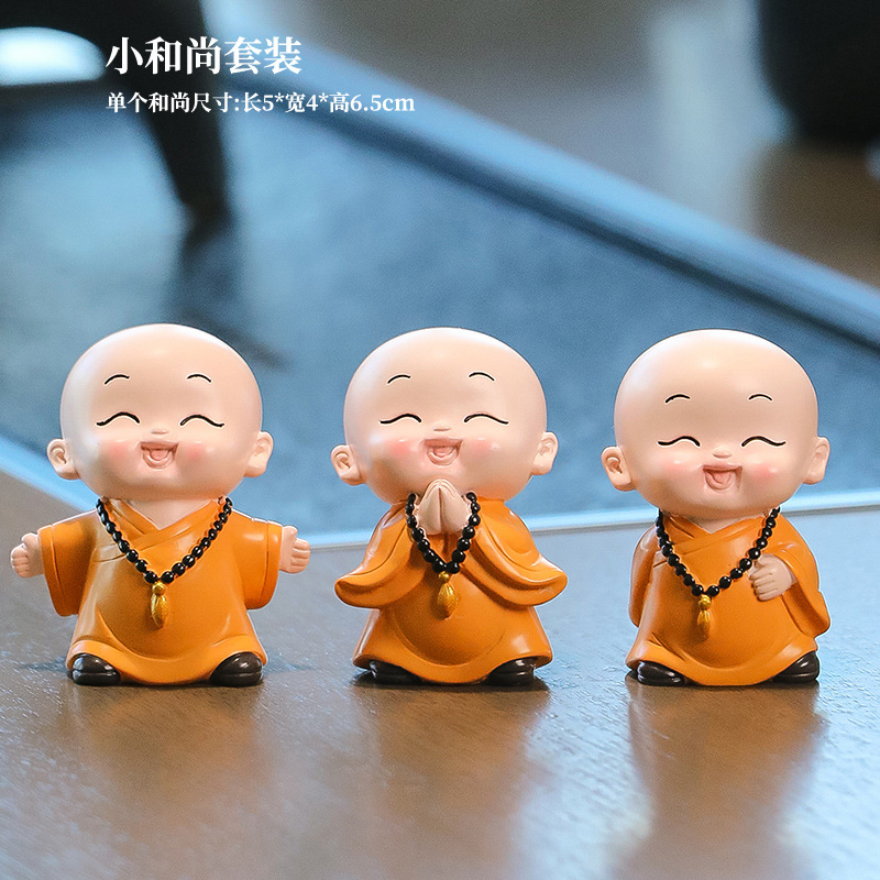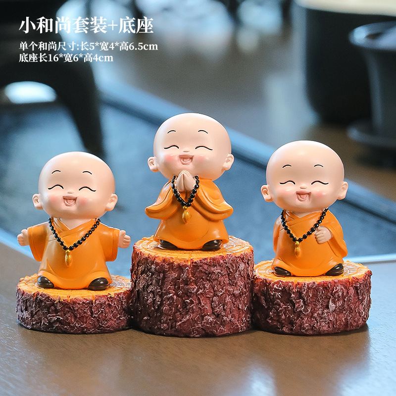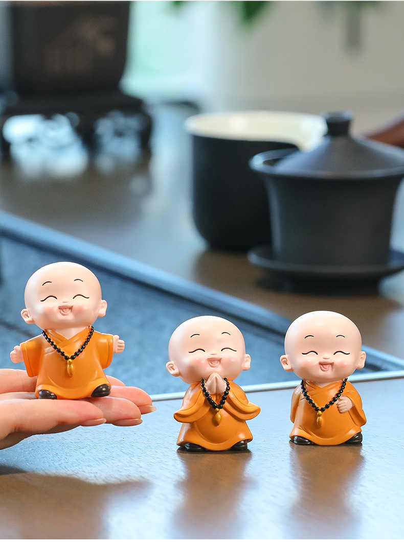 중국 선 스타일 작은 몽크 차 테이블 장식품 차 테이블 장식 사무실 바탕 화면 장식 부처님 스타일 귀여운 작은 스님