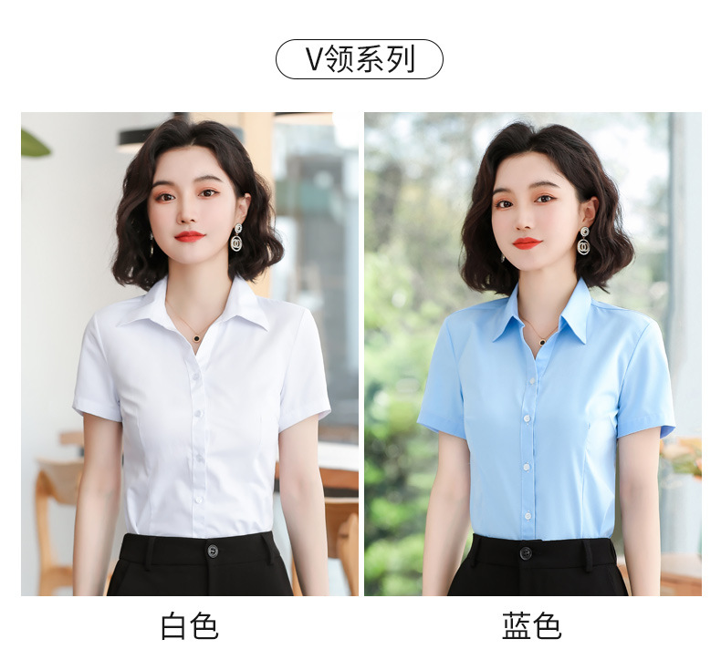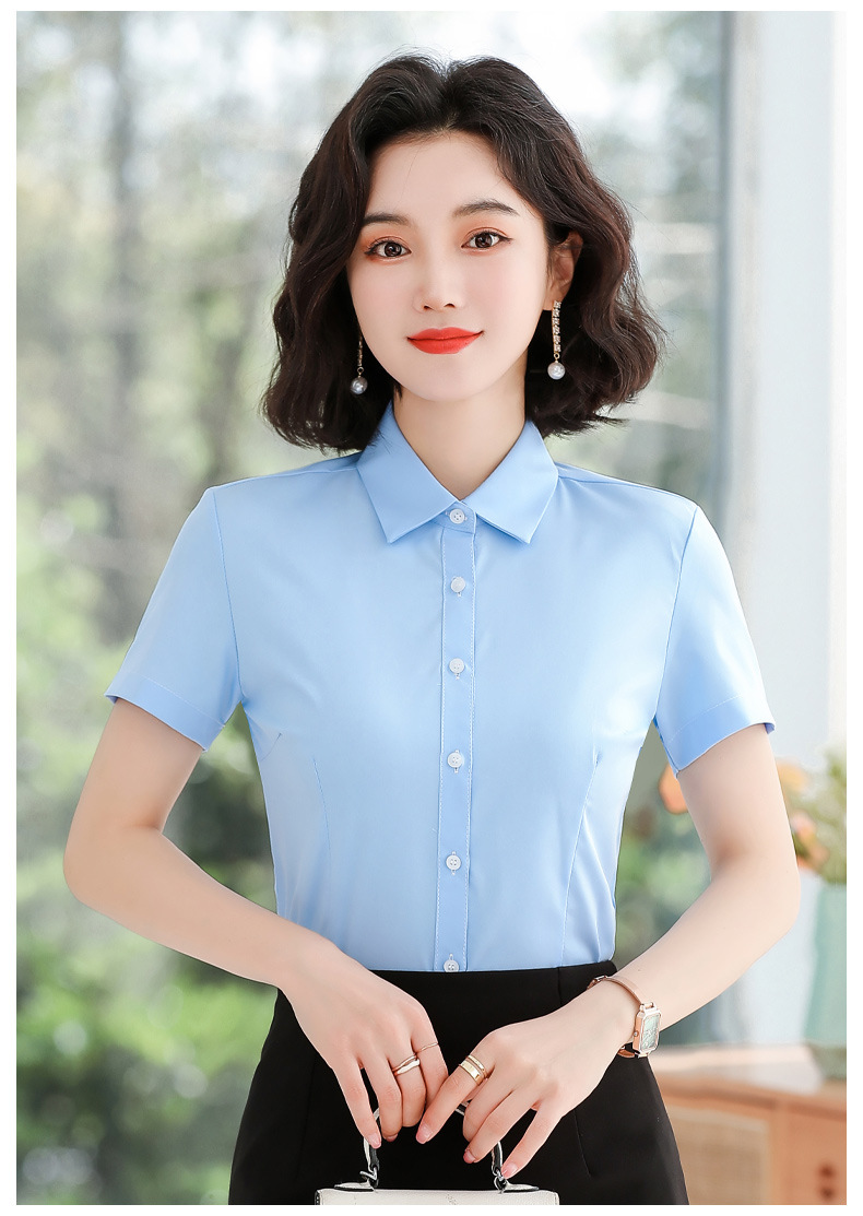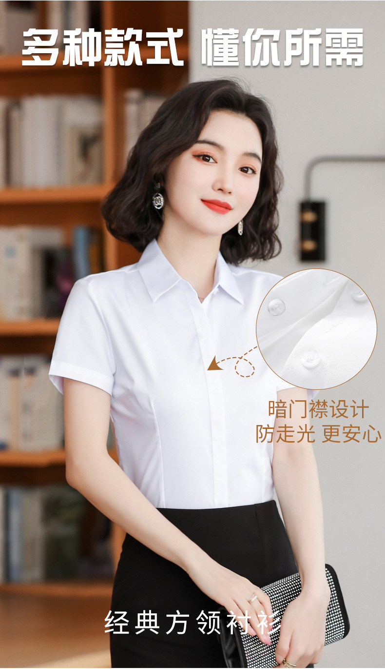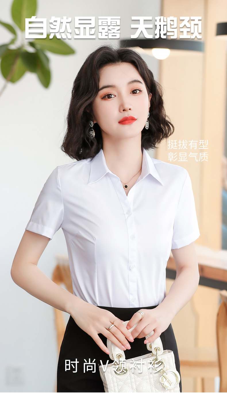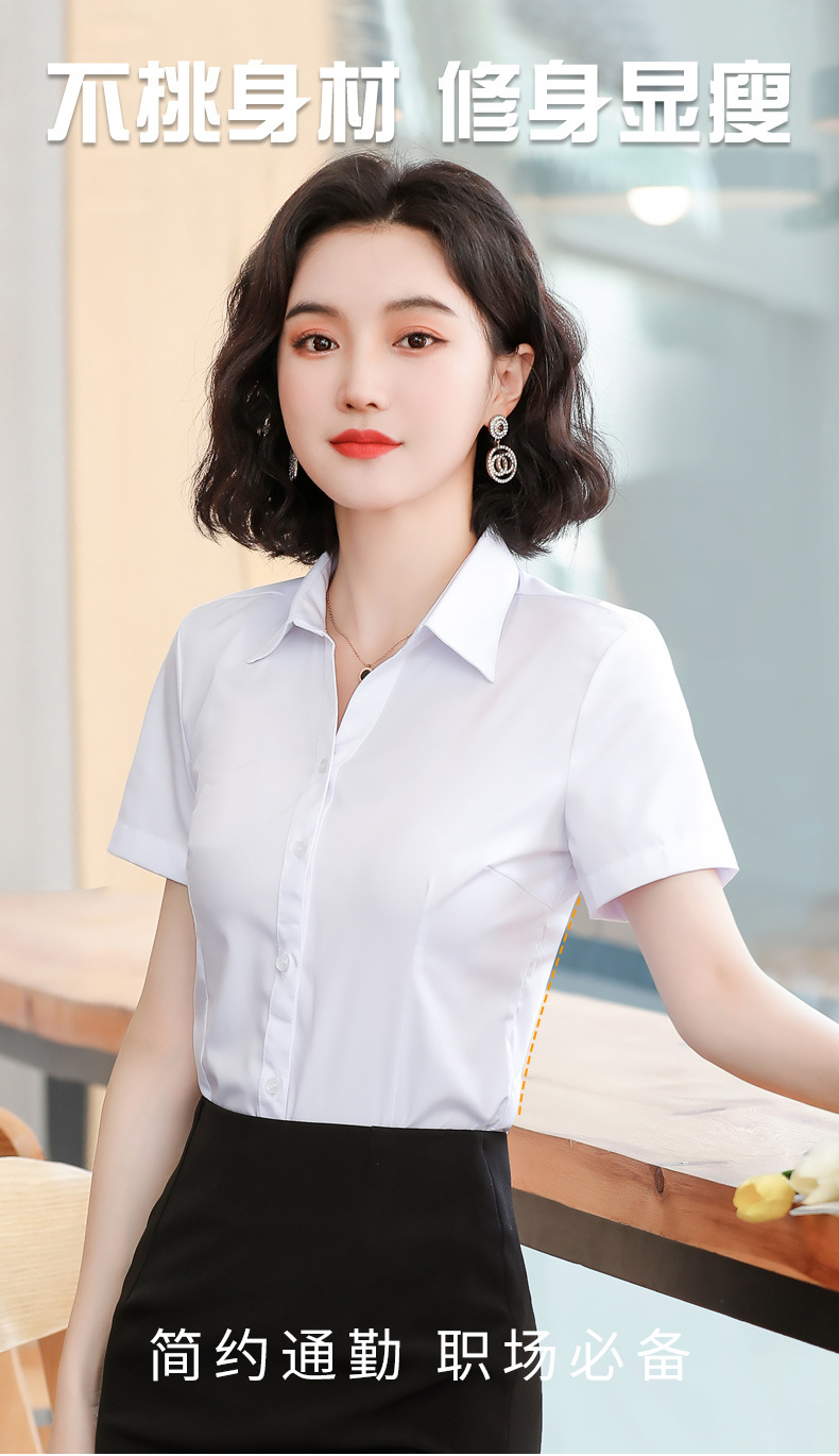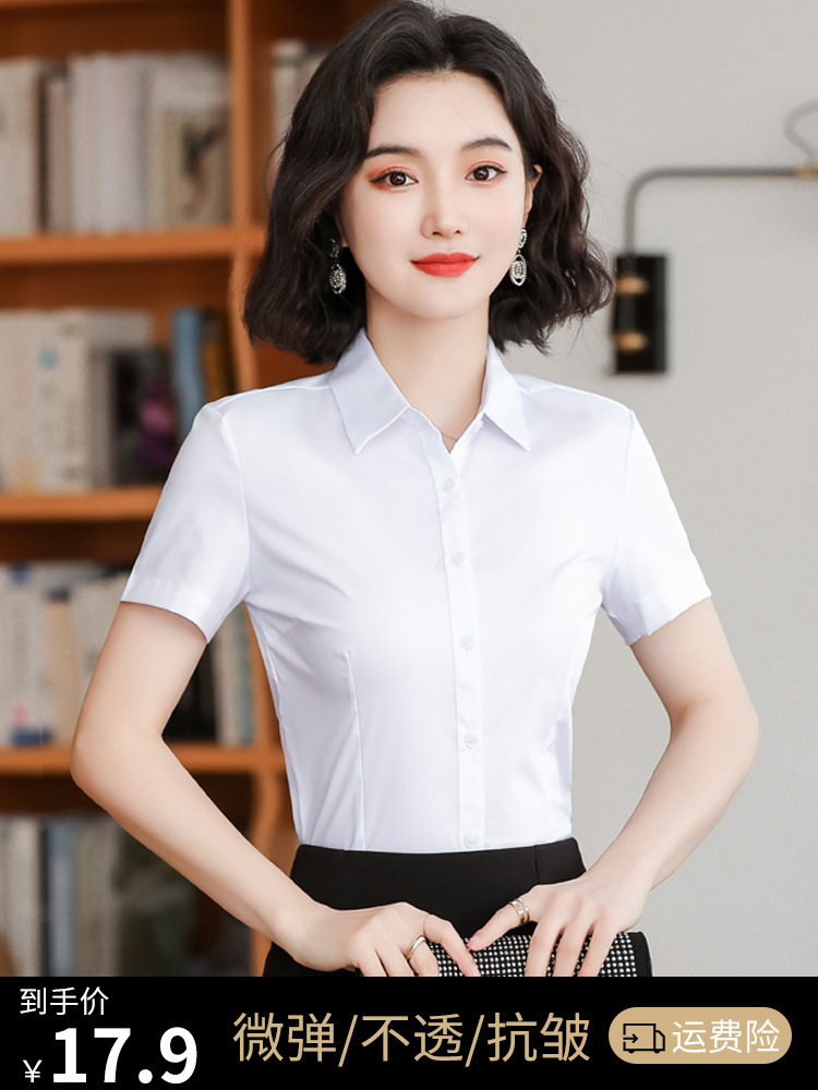 화이트 셔츠 여성 전문 반팔 셔츠 2024 새로운 한국식 작업 원피스 사업 원피스 얇은 통기성 작업복스토어 가기