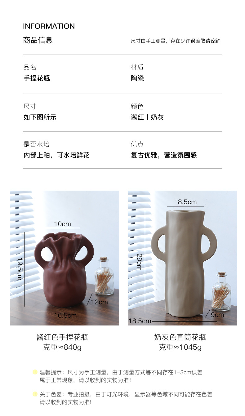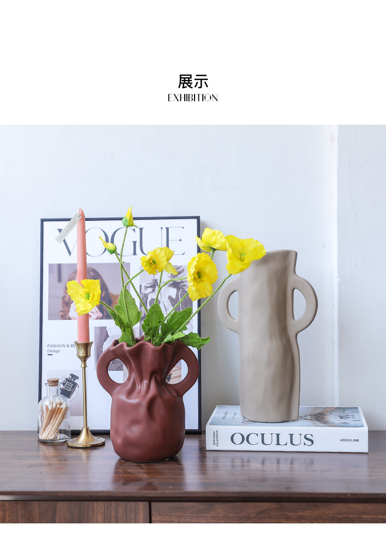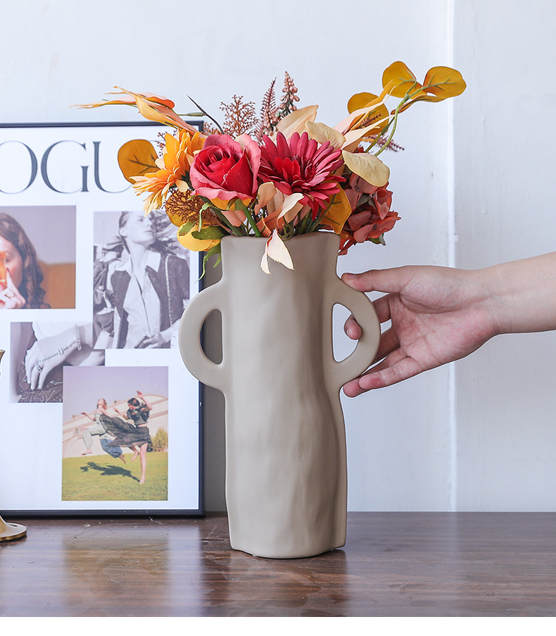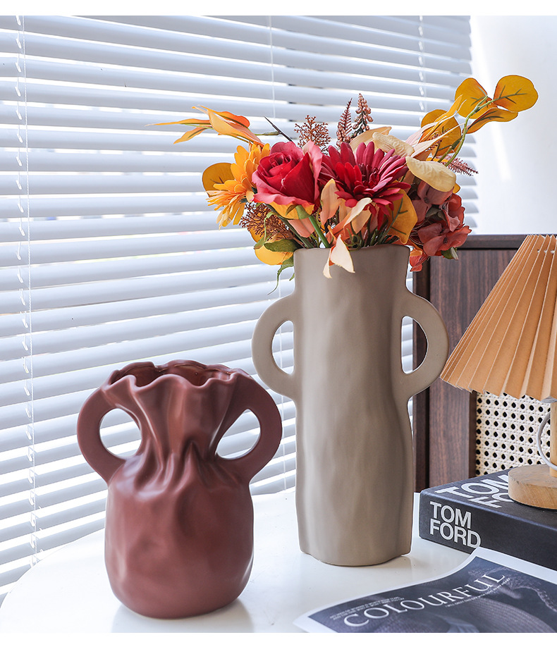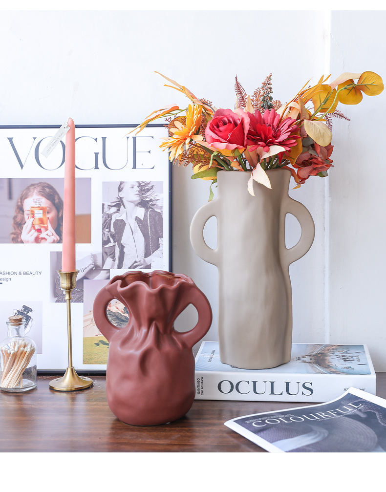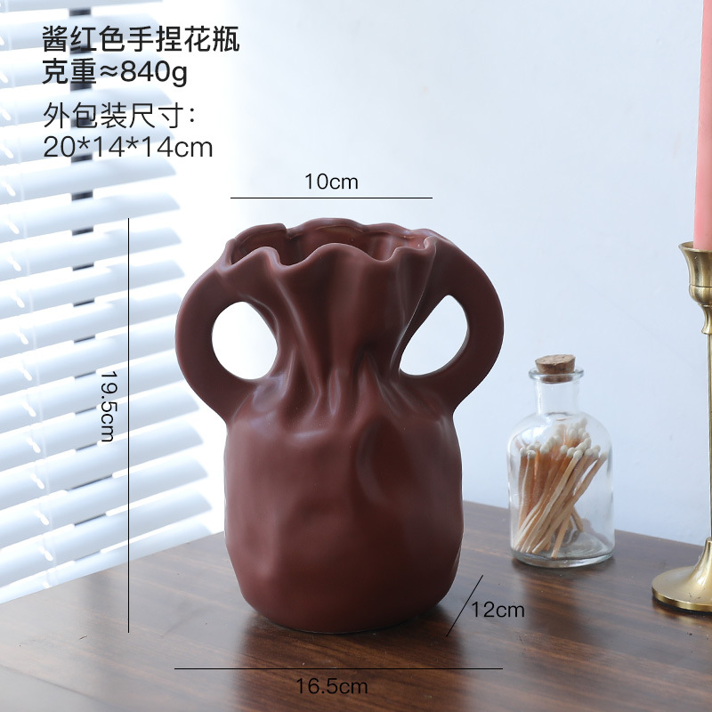북유럽 간단한 불규칙한 손 반죽 세라믹 꽃병 장식품 홈 거실 식당 수경 꽃 배열 현관 장식